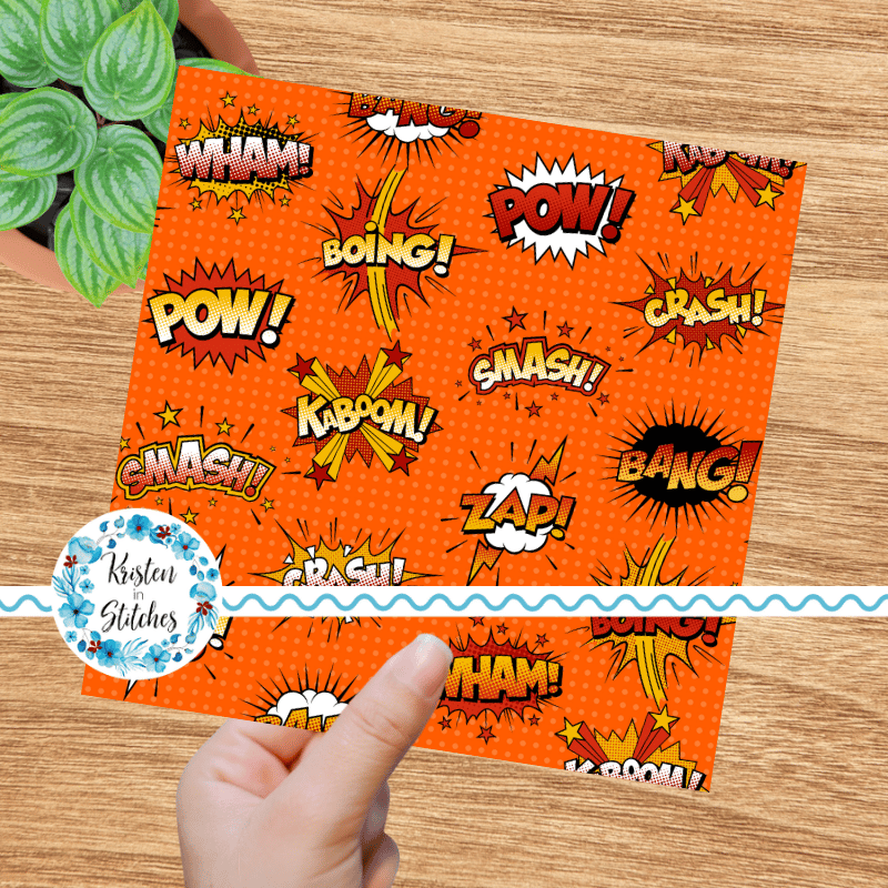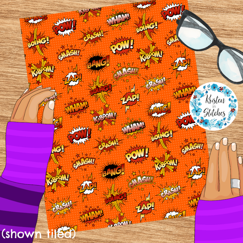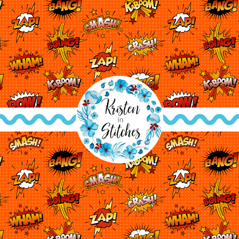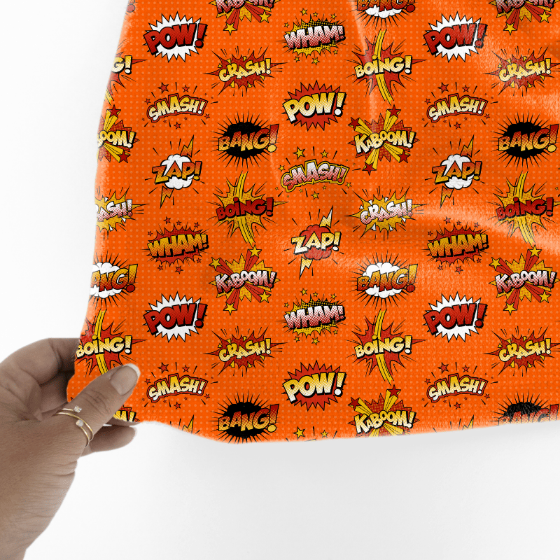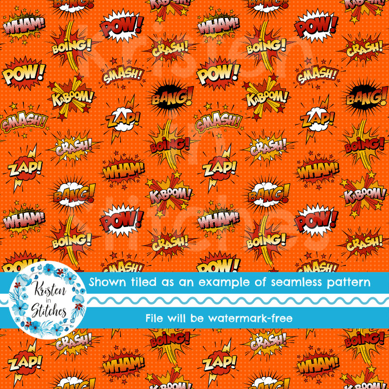 Superhero Comic Strip Bursts Seamless Pattern, Crash Boom Pow, Orange