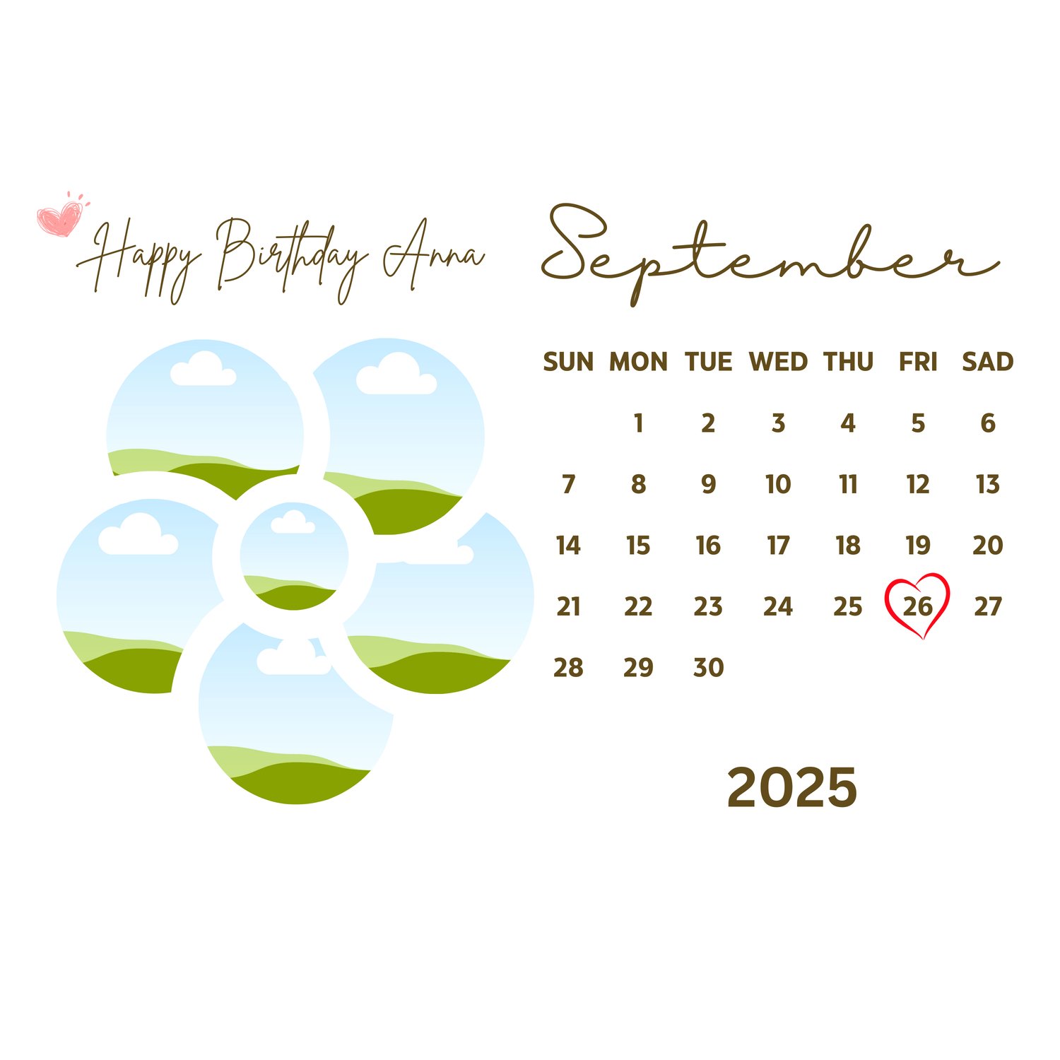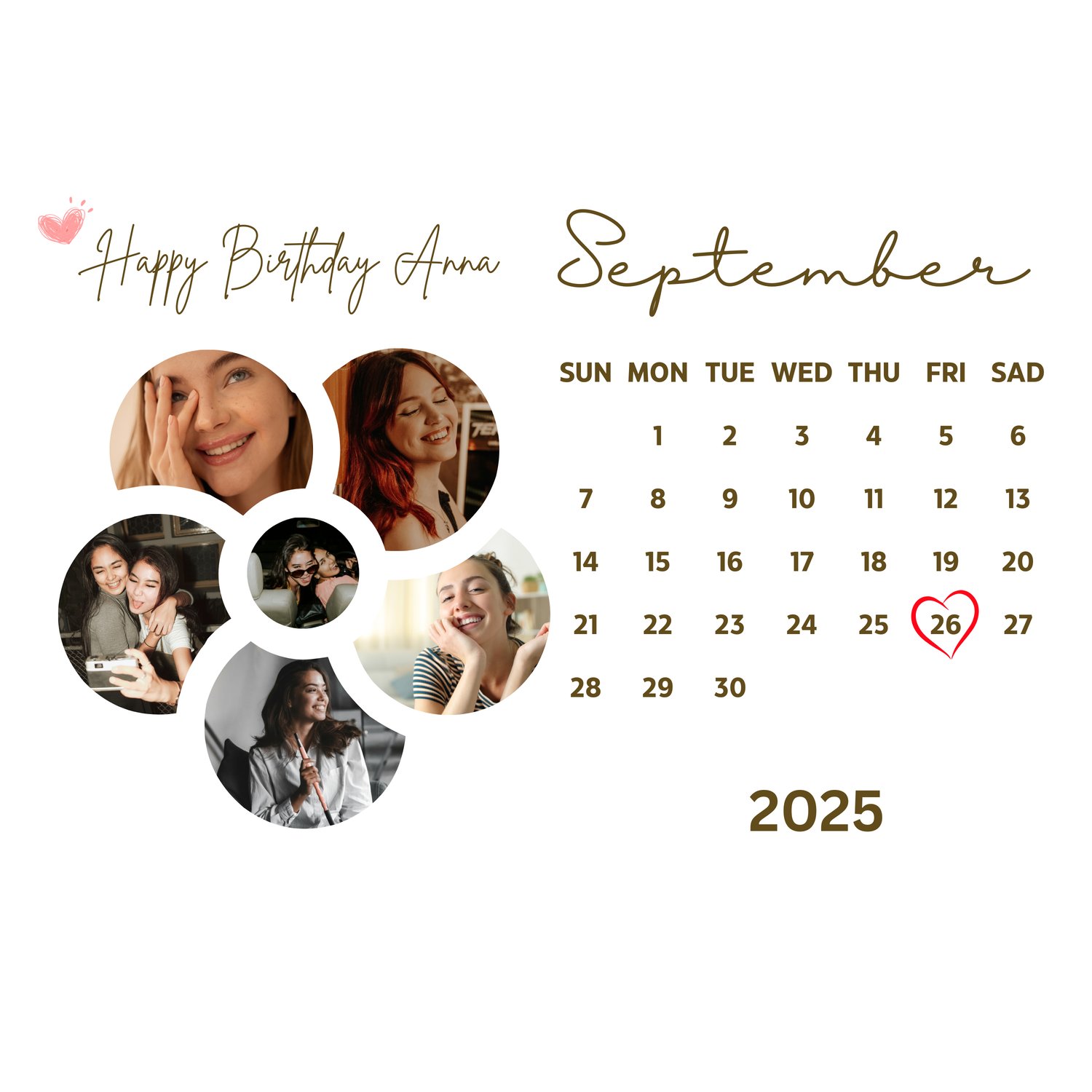 Flower Photo Collage Birthday Calendar September Canva Template Part 10