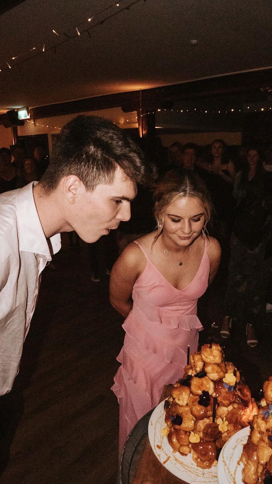 This is the ultimate celebration cake. Light choux pastry, filled with vanilla cream patisserie, dipped in crispy toffee, and wrapped in spun sugar and edible flowers.