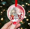 Red snowglobe and round bauble sphere designs with fairy and fairy house.