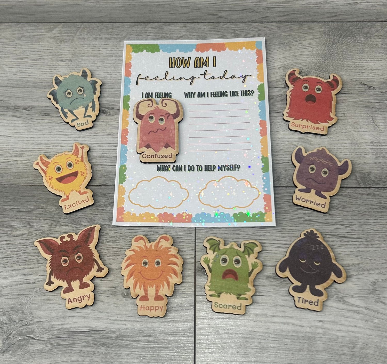 10 x FULL SETS - Worry Monster Wooden Feelings