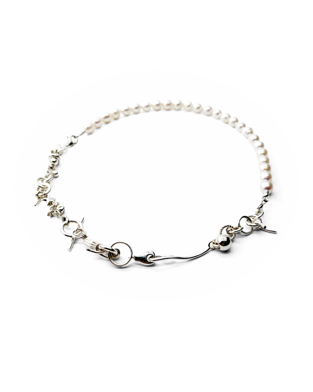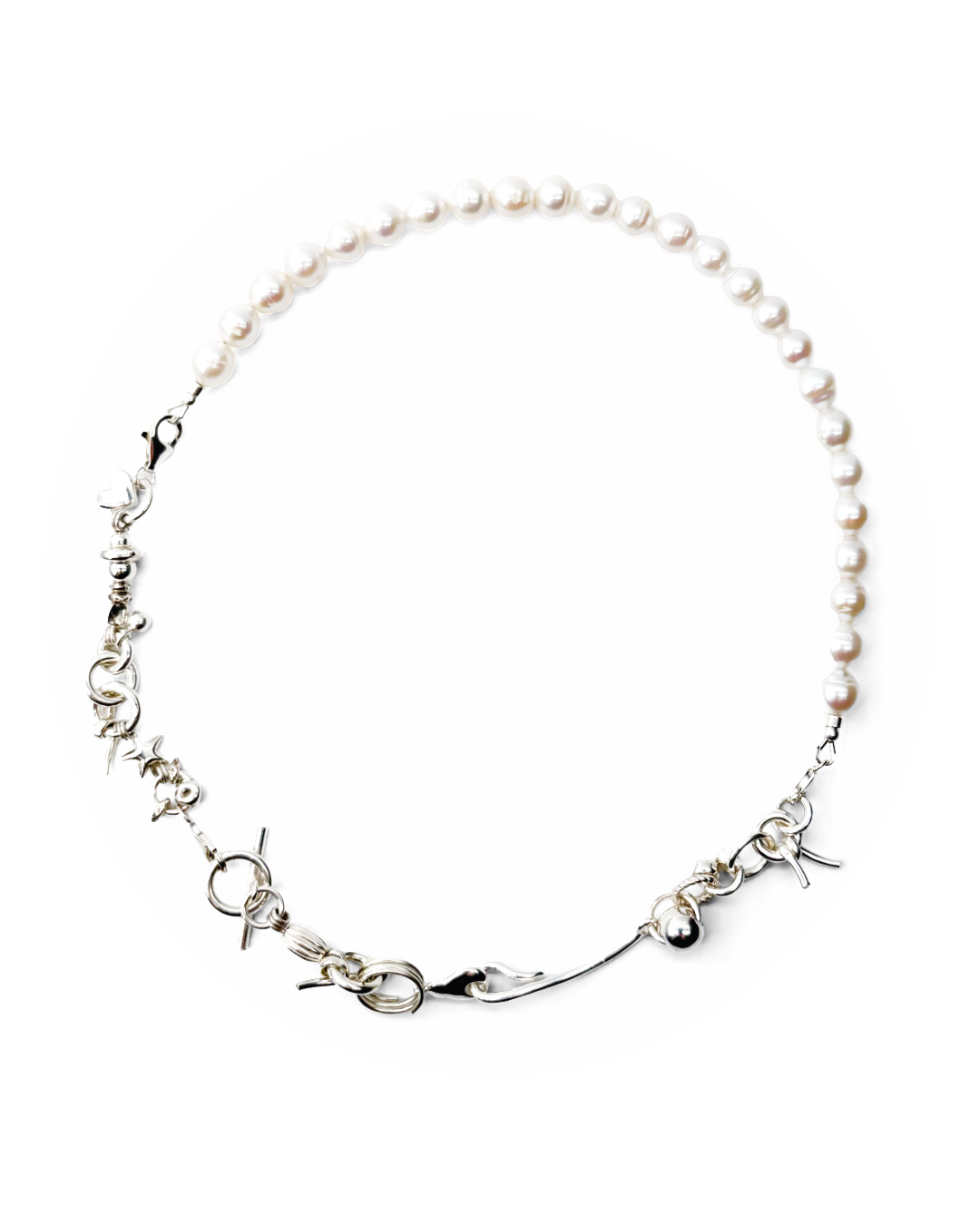 A convertible necklace and bracelet design.
