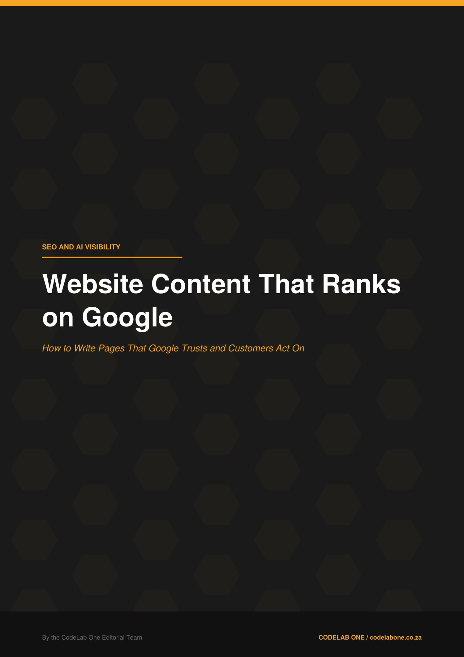 Getting your website to rank on Google is not about writing more content. It is about writing the right content: structured correctly, targeted at the right search intent, and written to the standard Google's algorithm rewards. Website Content That Ranks on Google covers the full content lifecycle for South African businesses: from understanding search intent and conducting keyword research for the specific phrases SA consumers use, through to writing service pages that rank and convert, building a blog content strategy that grows authority over time, and applying on-page SEO techniques that make every page fully readable by Google.