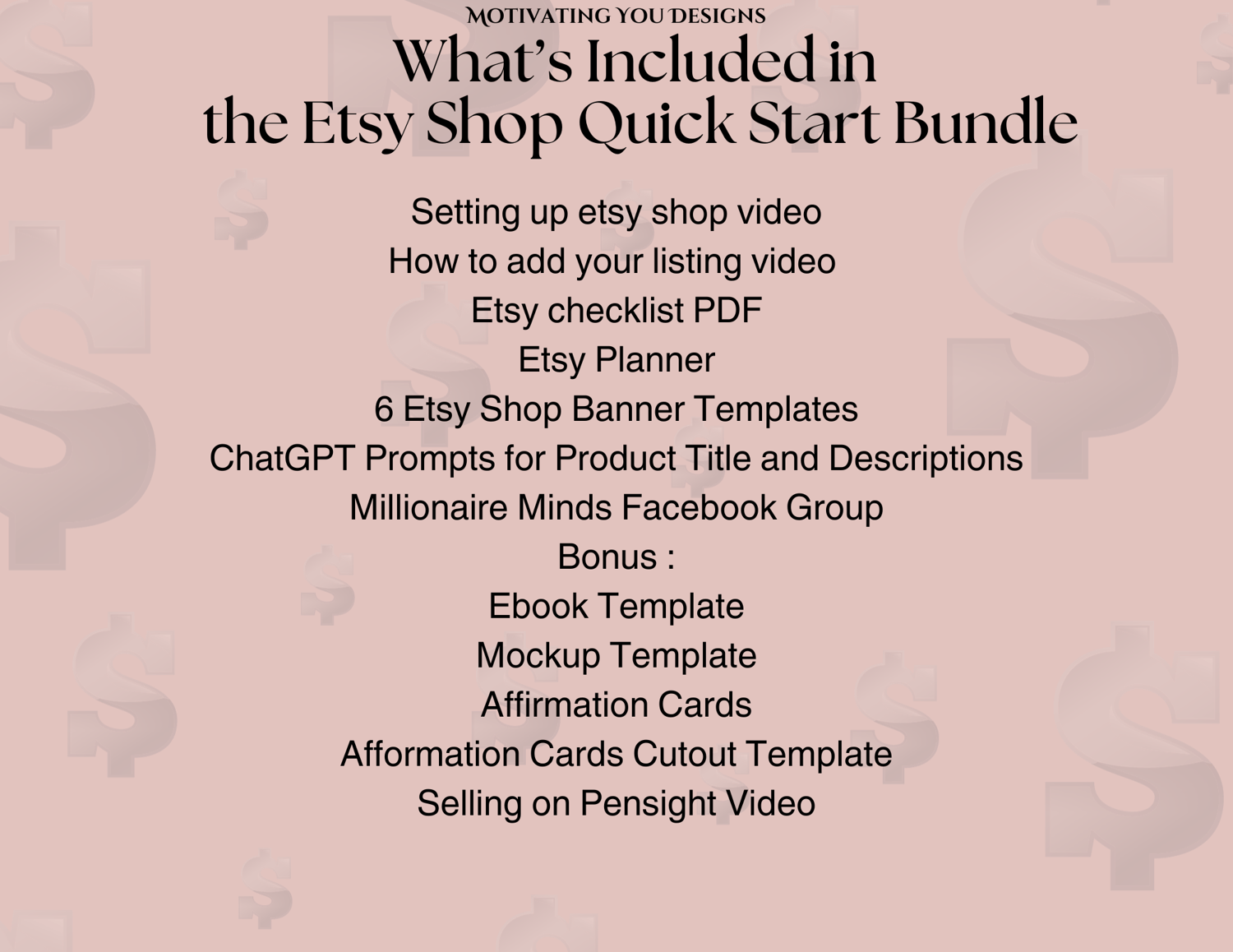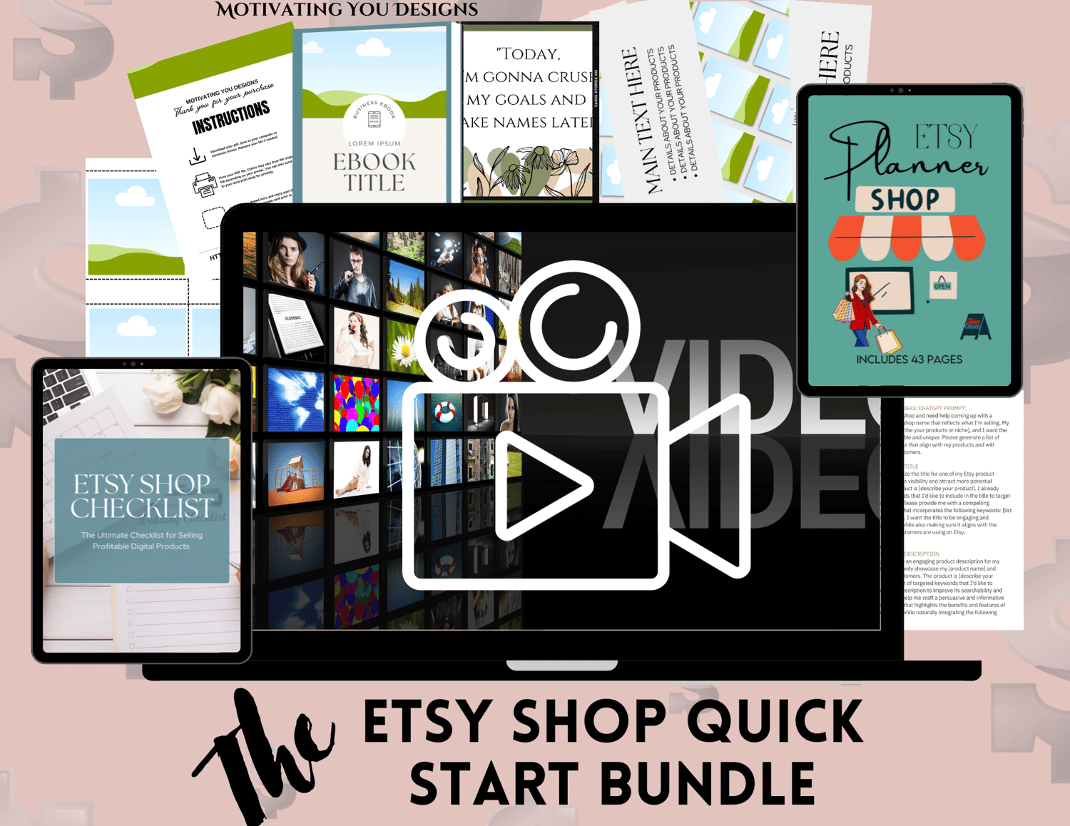 This bundle is your ultimate companion as you embark on your Etsy adventure. Are you ready to launch your Etsy shop with confidence? Our Etsy Shop Quick Start Bundle is tailor-made for anyone eager to begin their Etsy journey, and wants all the tools to learn how to get started in one place.