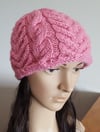 This 12ply Beanie features two cable patterns and has a reverse stocking stitch brim.