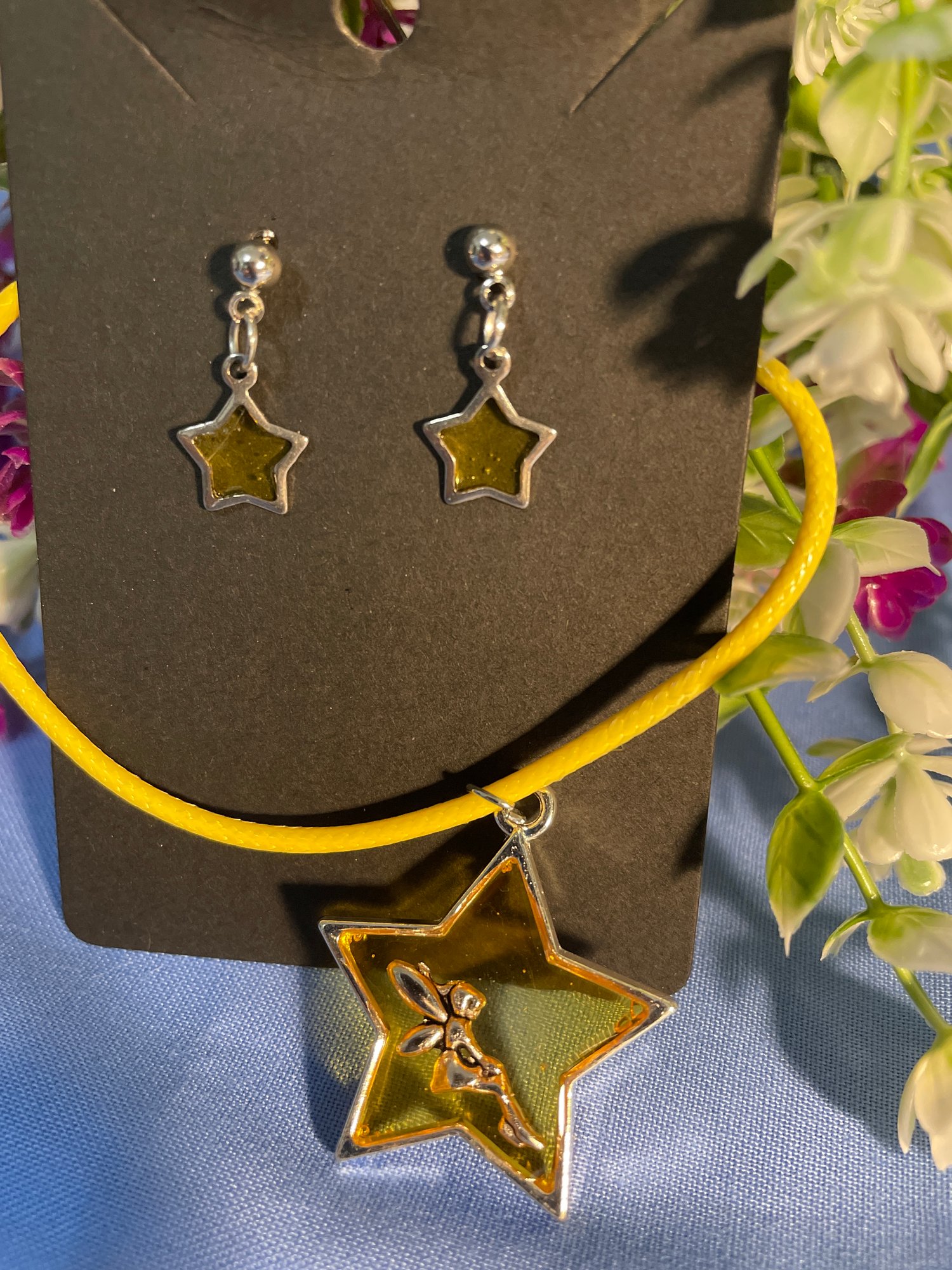 A little fairy sitting in a star very simple but unique. The star earrings are on a stud back but can be changed out for a dangling hook.