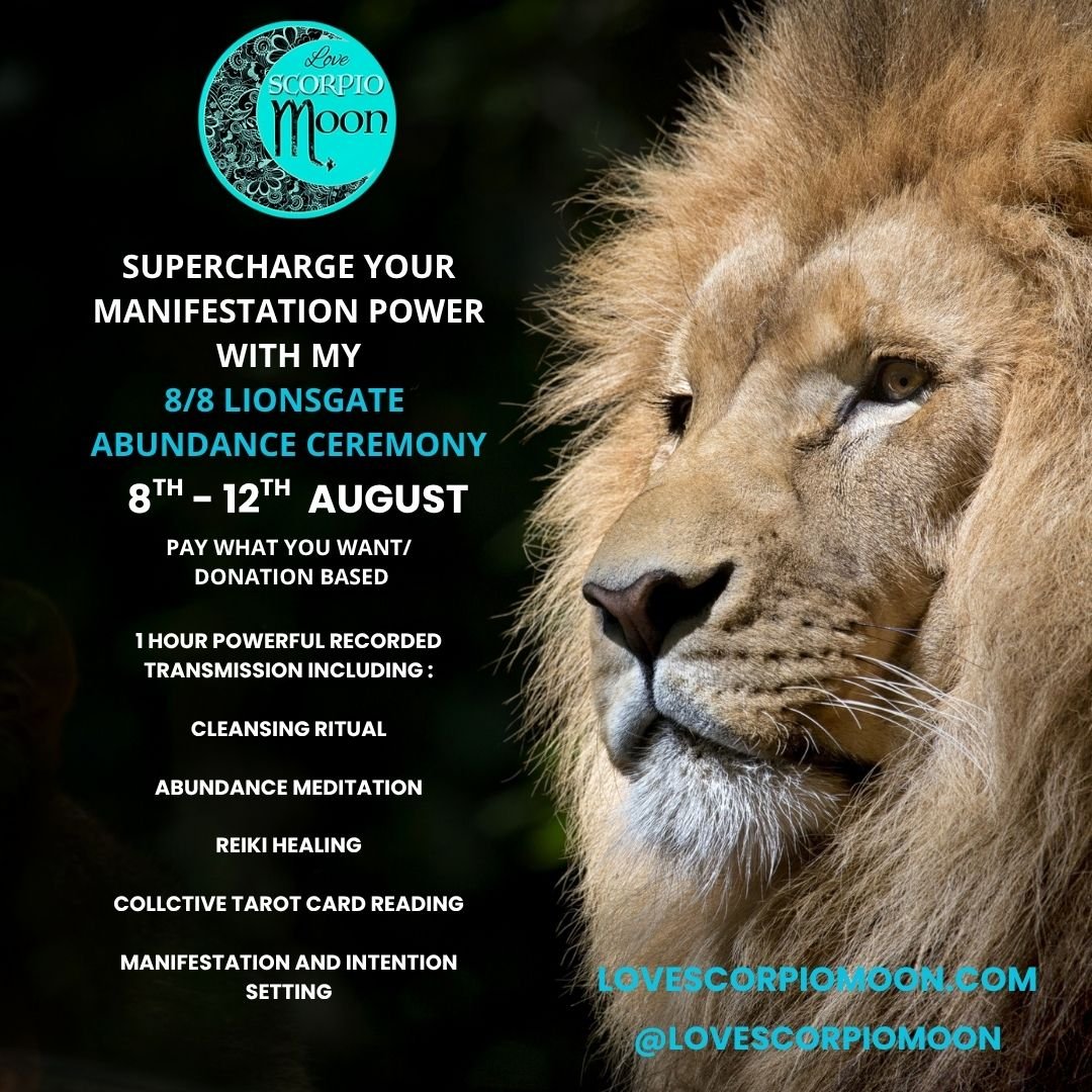 Join Lita @ Love Scorpio Moon for a transformative Lionsgate 8/8 Abundance Ceremony & ActivationÂ