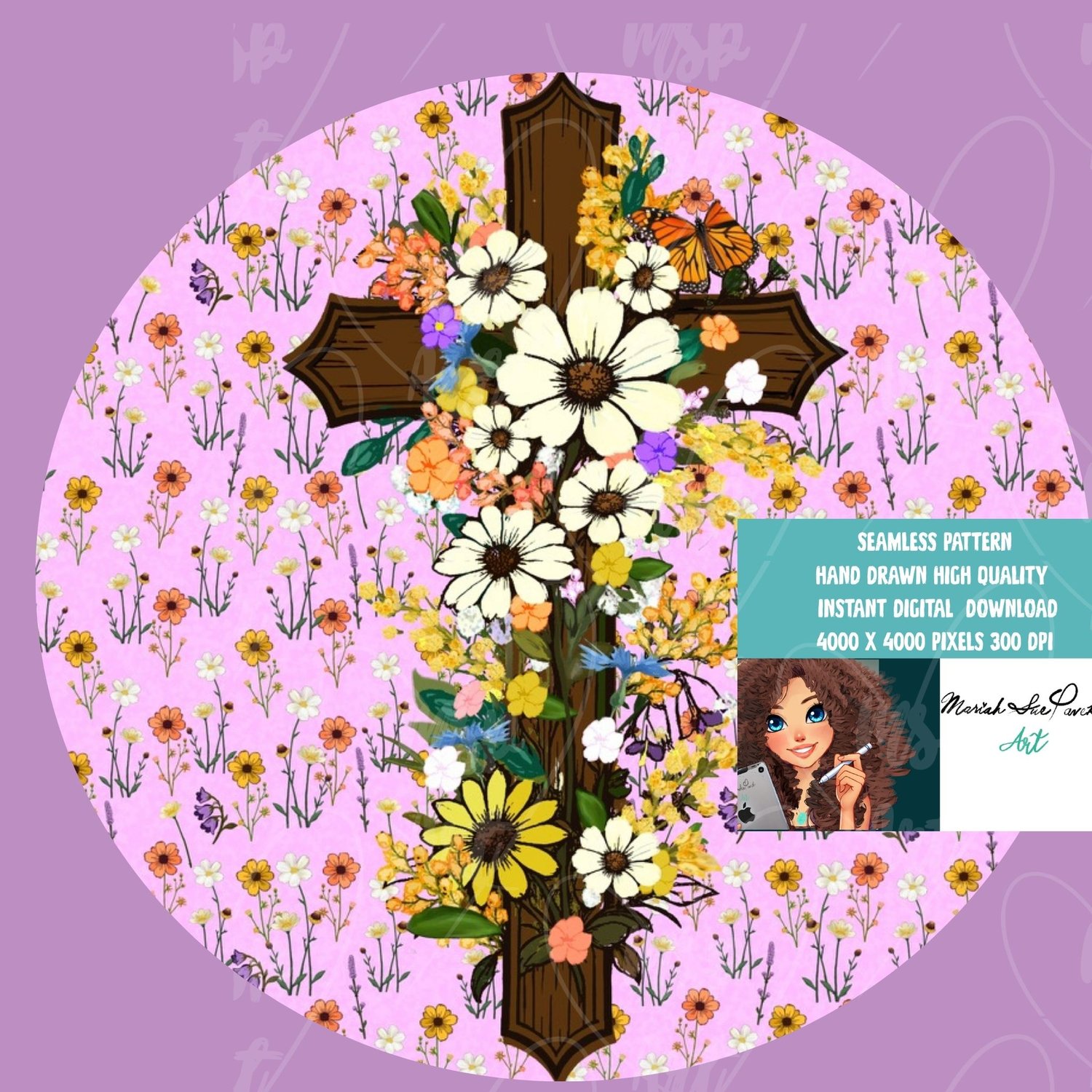 Floral Cross Mini - Light Pink