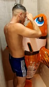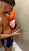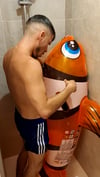 Kyllan's inflatable nemo was dirty, So Kyllan decided to wash it in the shower.