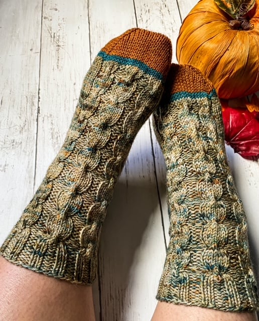 These socks are super fun to knit and work up so fast! The cables keep it interesting and are simple to memorize. Speckled Egg Socks work well with a variety of colors: speckles, tonals, solids, semisolids, variegated, etc.! This pattern is worked top down on size US 4 (3.5mm) needles with a classic heel flap and gusset.