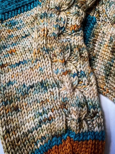 Speckled Egg Socks are beginner friendly with lots of photos of how to work the cable stitches.