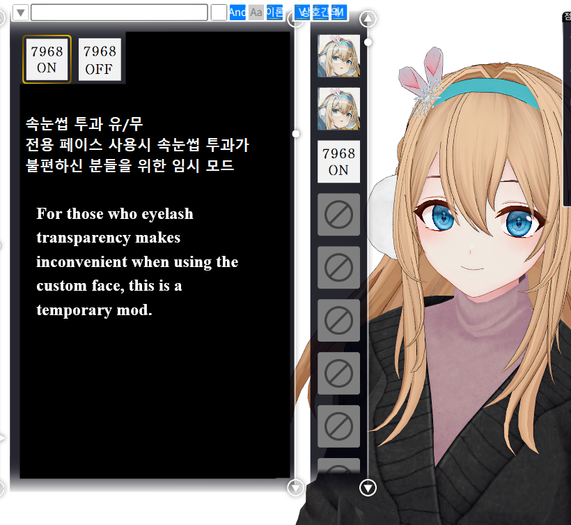 전용 페이스 사용 시 속눈썹 투과가 불편하신 분들을 위한 임시 모드