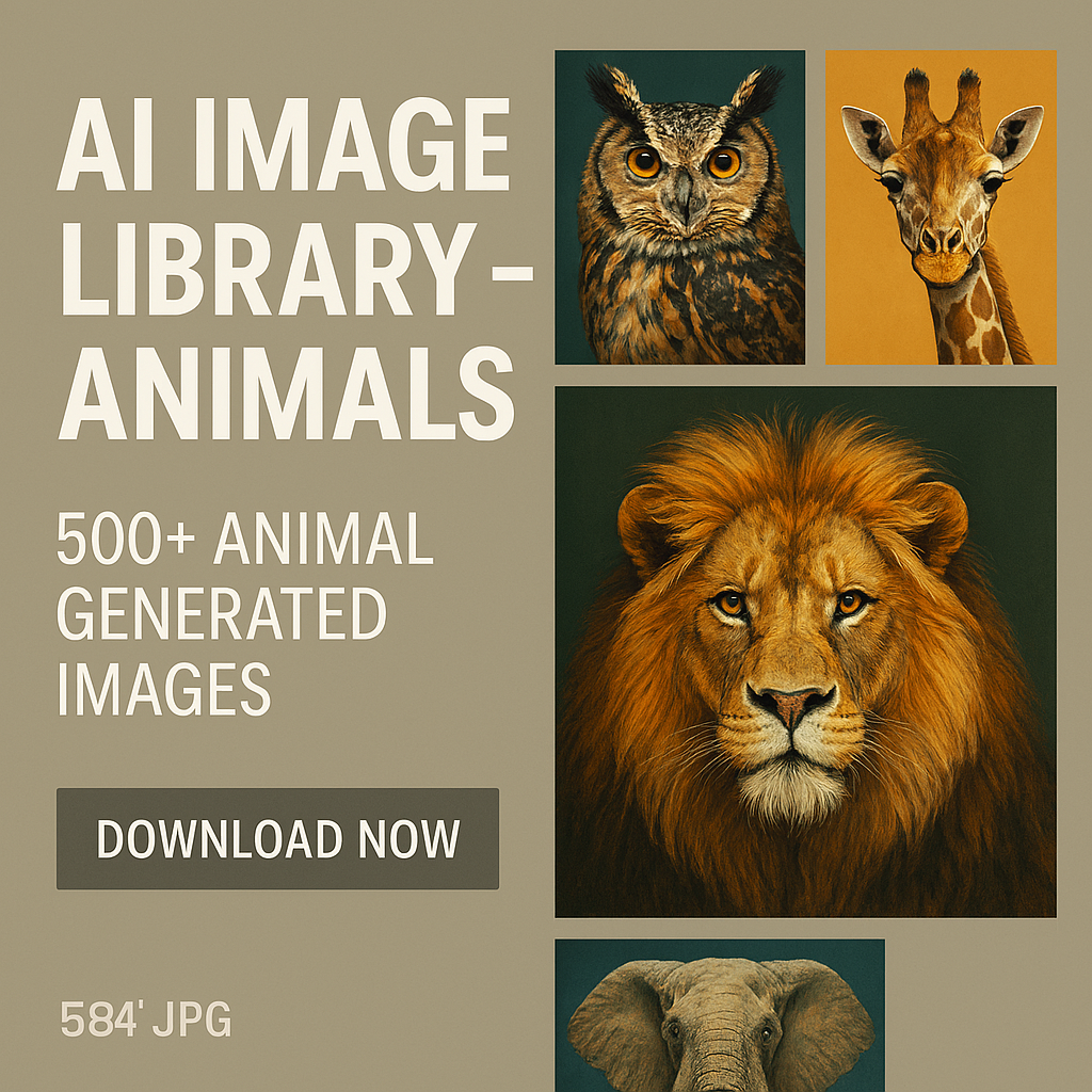 A curated collection of AI-generated animal images designed for creators, educators, and digital entrepreneurs.