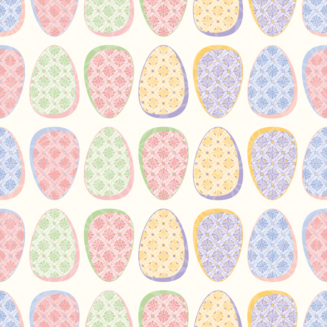 Colorful Easter eggs vector repeat pattern with foliage lattice illustrations.