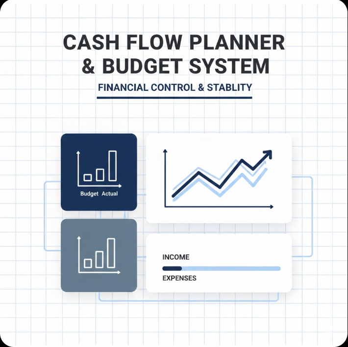 The Cash Flow Planner & Budget System is a professional Google Sheets tool designed to help freelancers, solopreneurs, and small business owners plan, track, and manage cash flow with clarity and confidence.