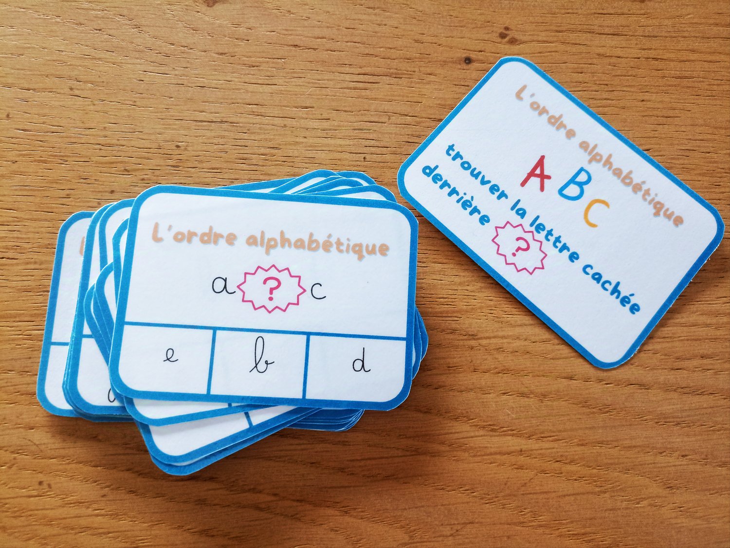 25 cartes à pince pour travailler l'ordre alphabétique en autonomie.