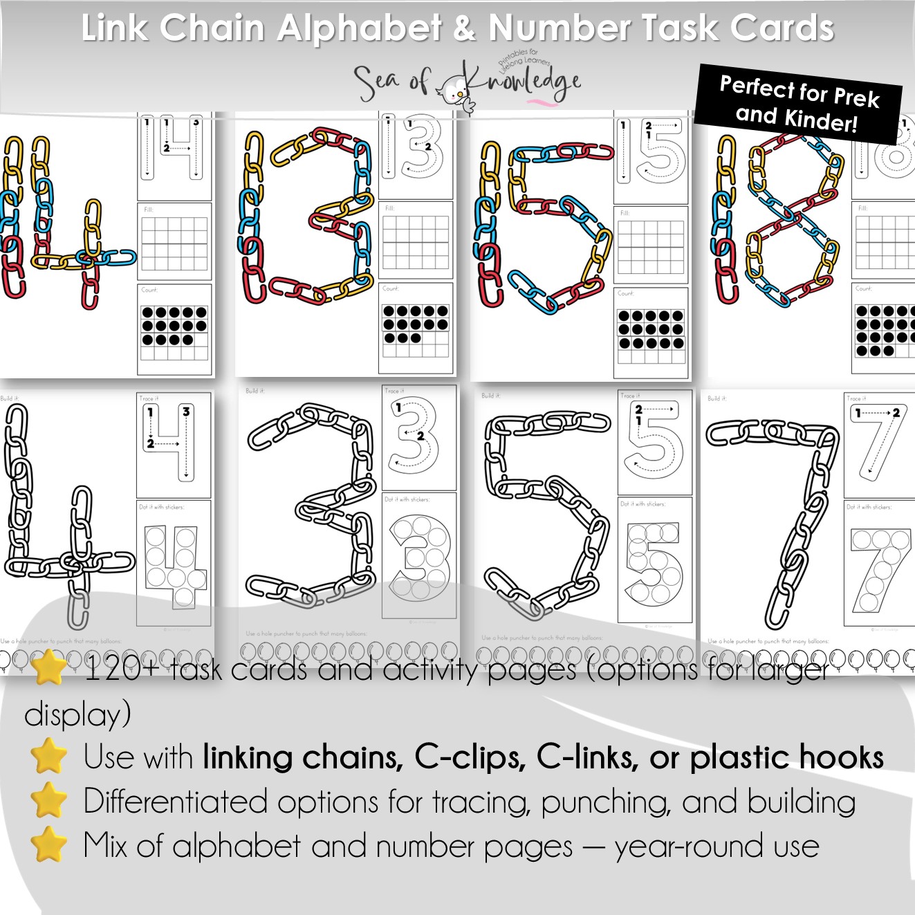 Chain Link Activities | Alphabet Strips | Fine Motor Number Cards C-clips