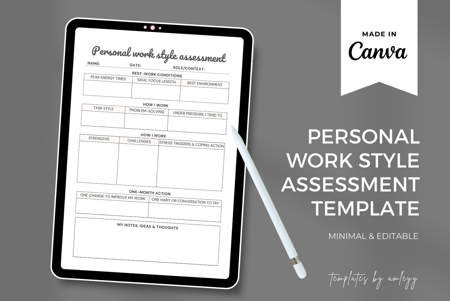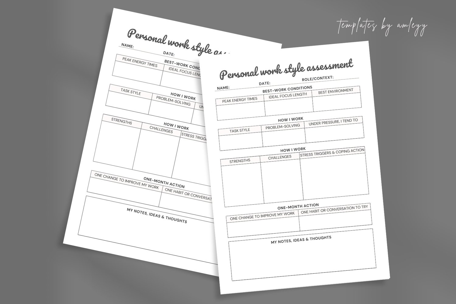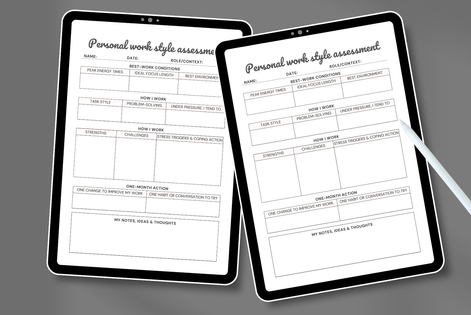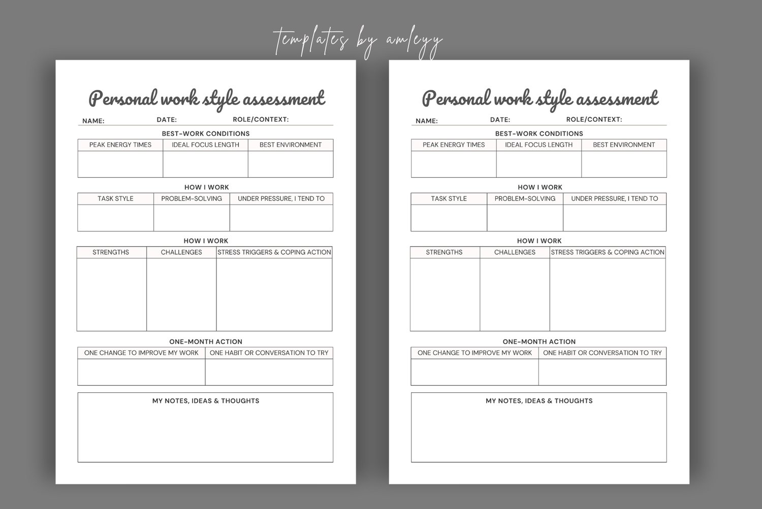 Personal Work Style Assessment Planner Template | Productivity & Time Management Organizer