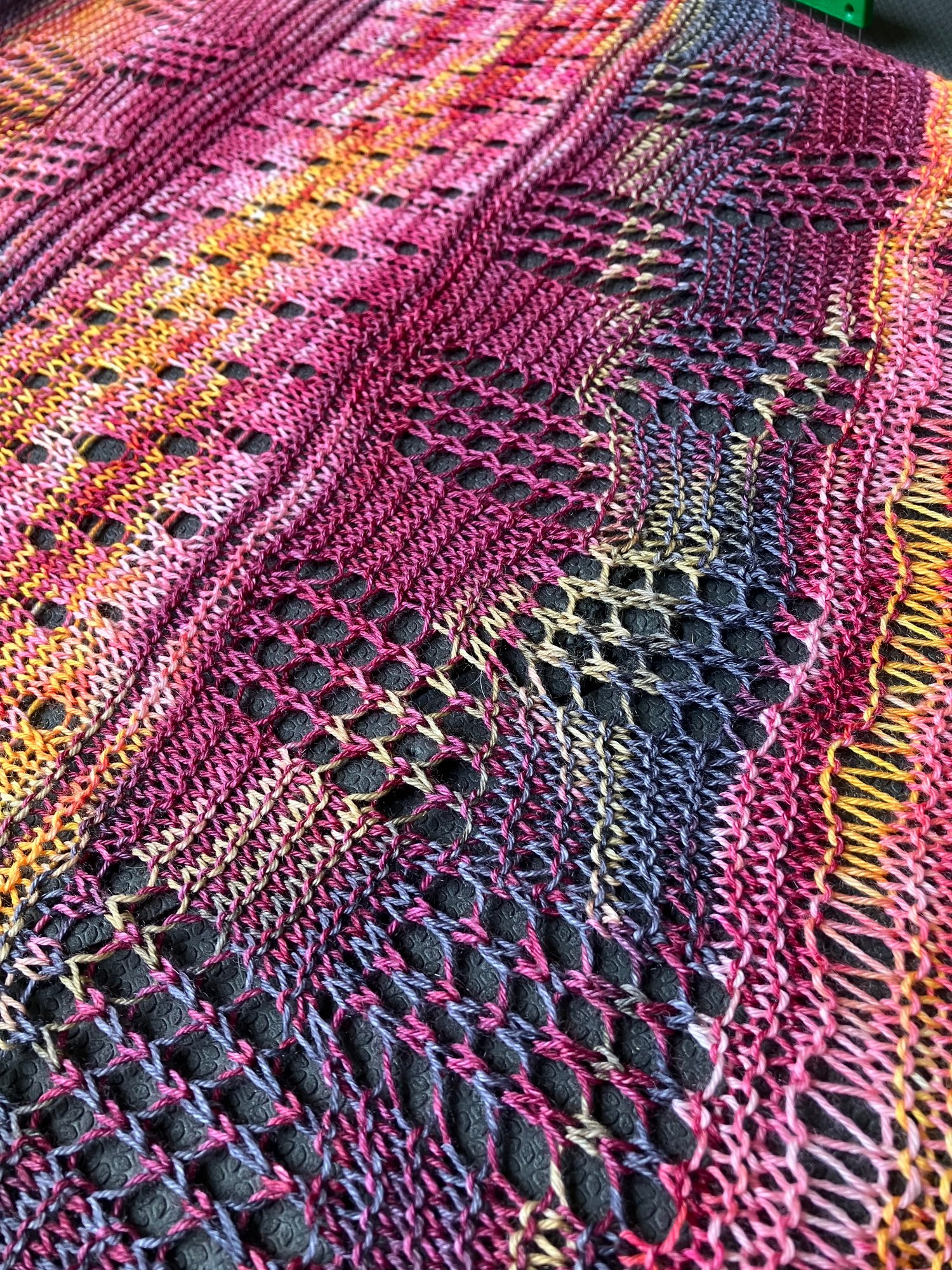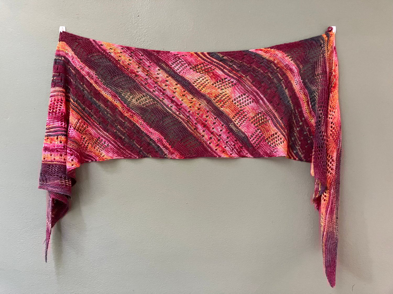 Depth of shawl: 16” / 40.5 cm after blocking
