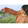 Here we have a breezy lace pullover with a slinky 70s vibe. As elegant layered over your bathing suit or favorite thrifted maxi dress as it is styled with your coolest denim, this silky sweater will take you from summer into fall in a super sexy way.