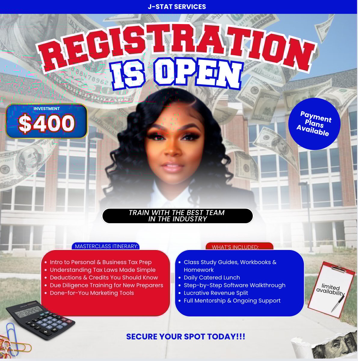 Starting Sunday, October 5th via Zoom (weekly sessions, 1.5–2 hours). This program covers tax laws, hands-on training, homework, and assignments. You’ll also have full access to our Self-Paced Tax Academy for ongoing study.