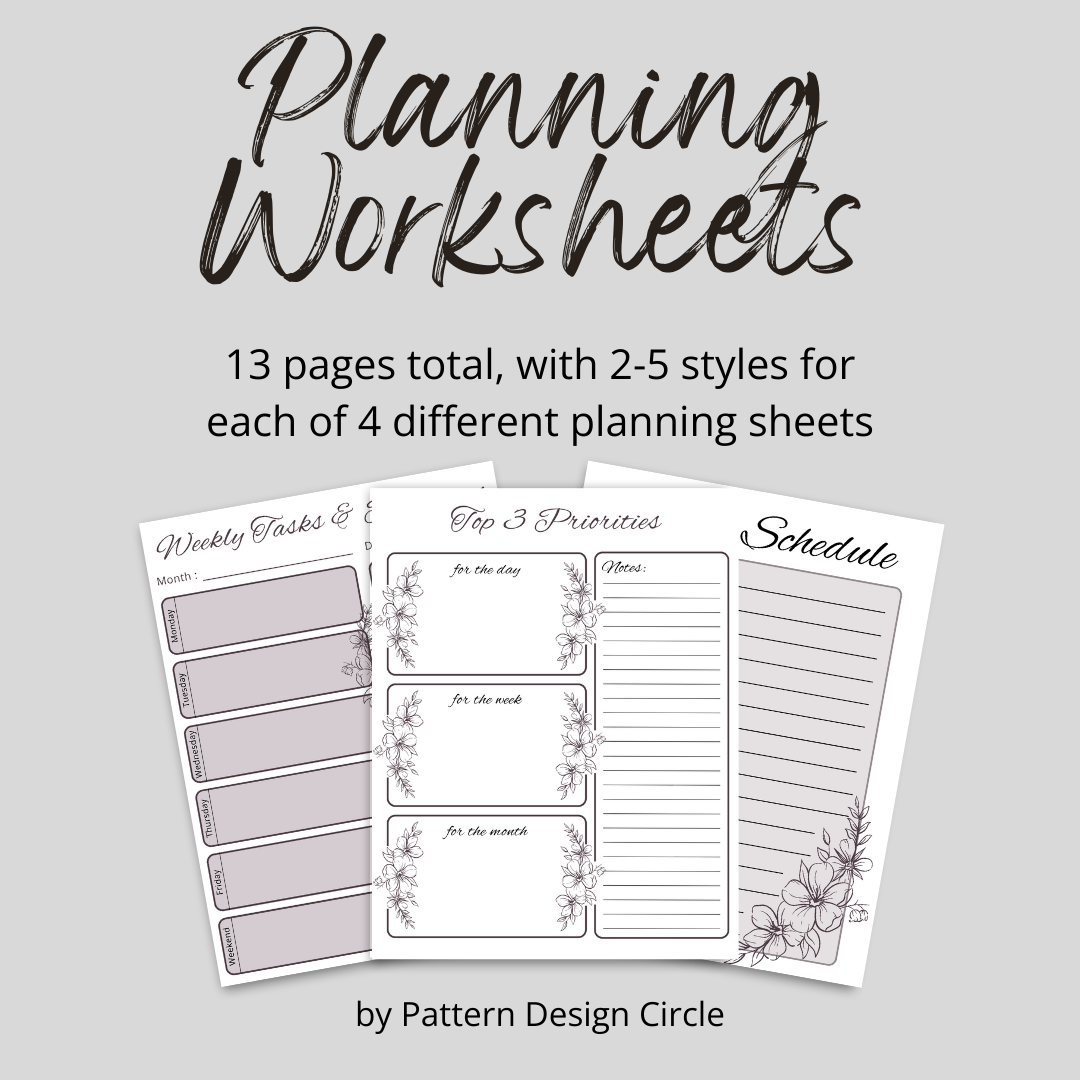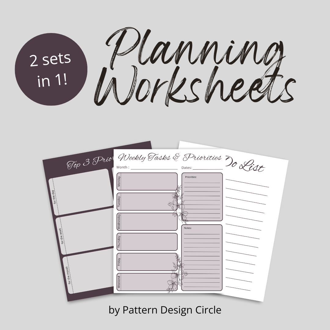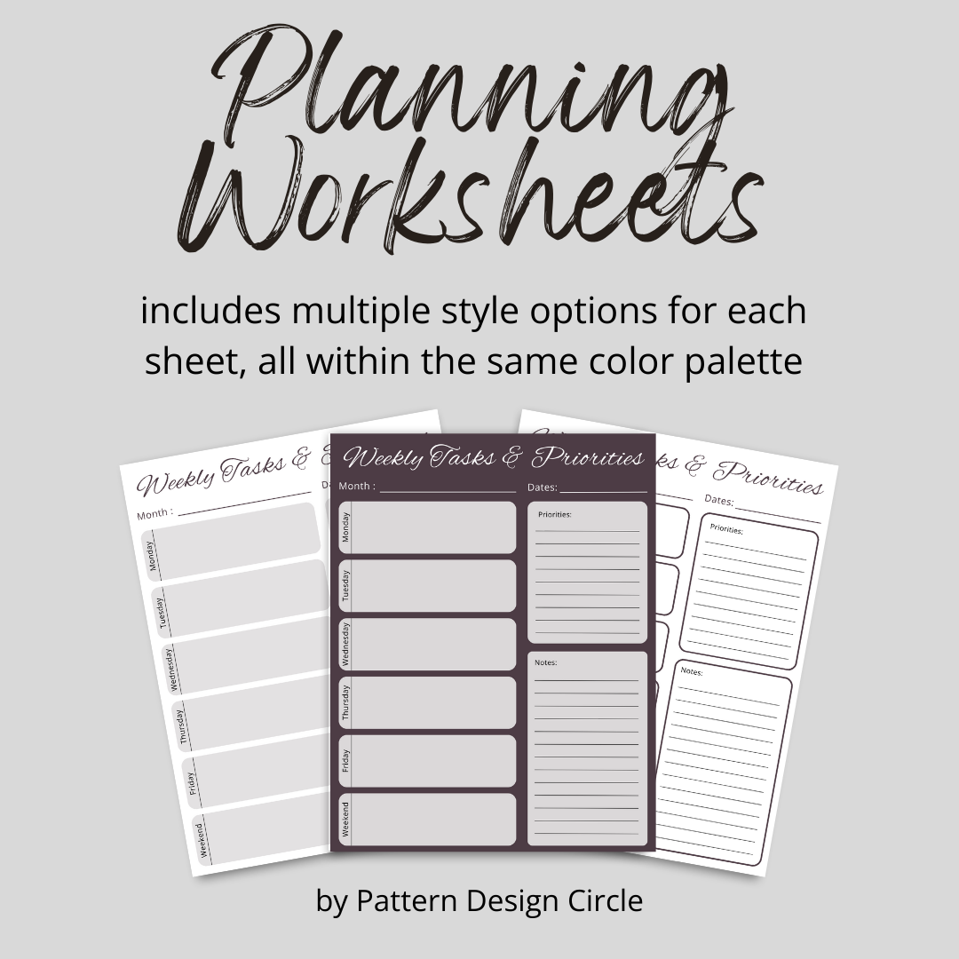 Purchase of this set includes 28 total planning worksheets. This listing is a bundle set of the Eggplant Set & Eggplant Flowers Set.