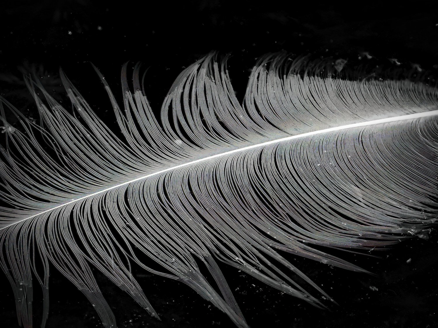 A swan's feather floats in dark water.