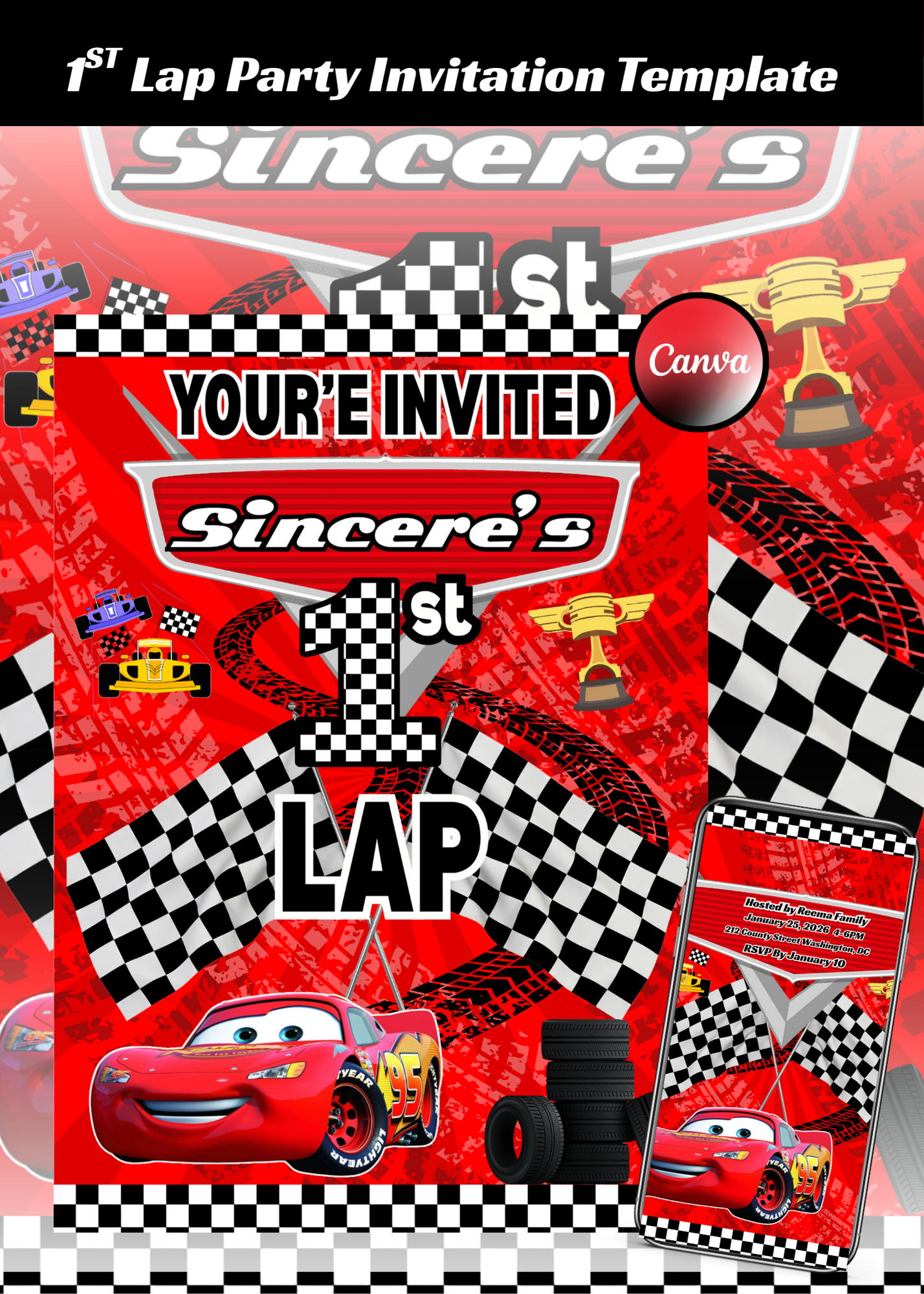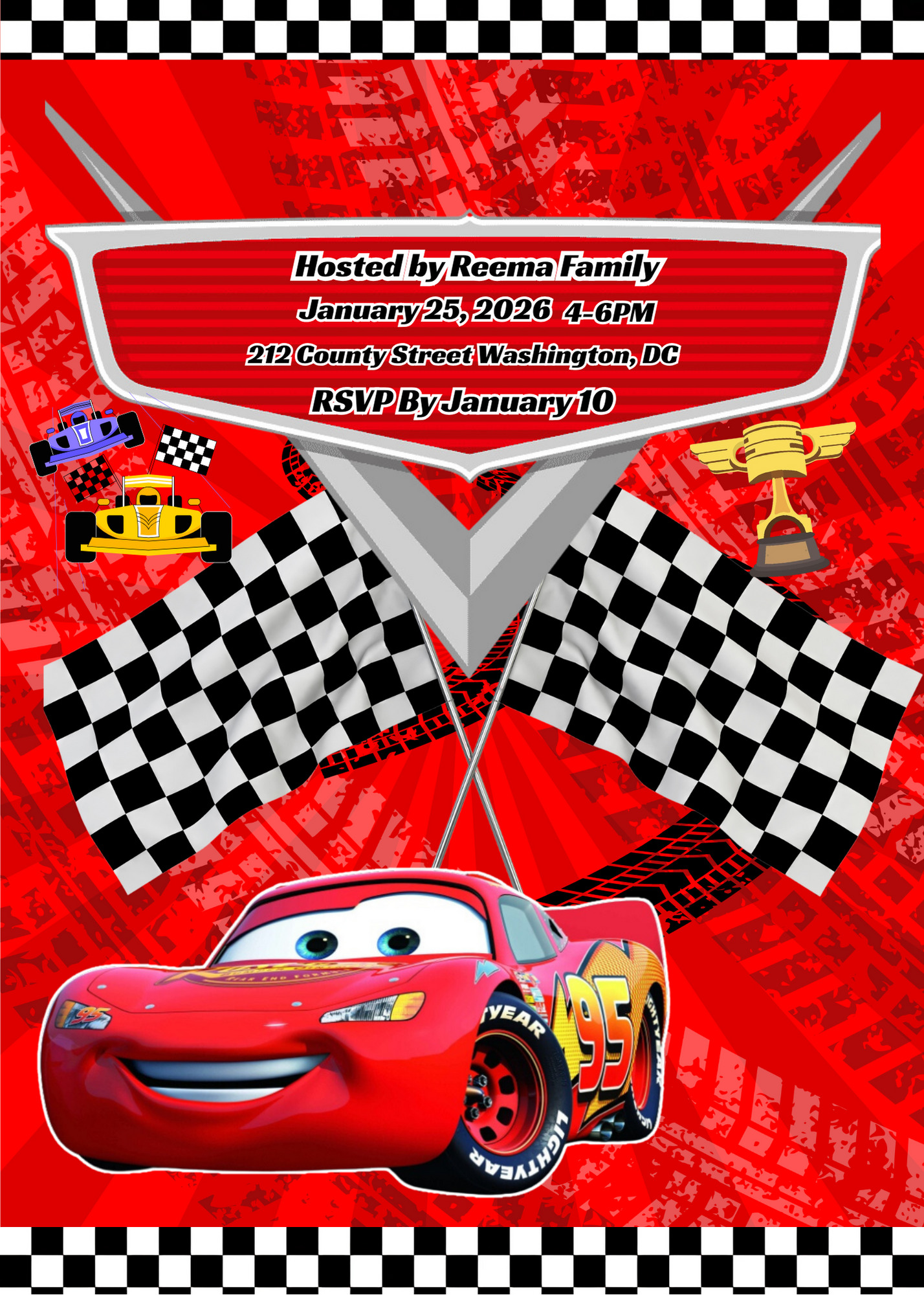 🏁 Perfect for digital or printed invitations