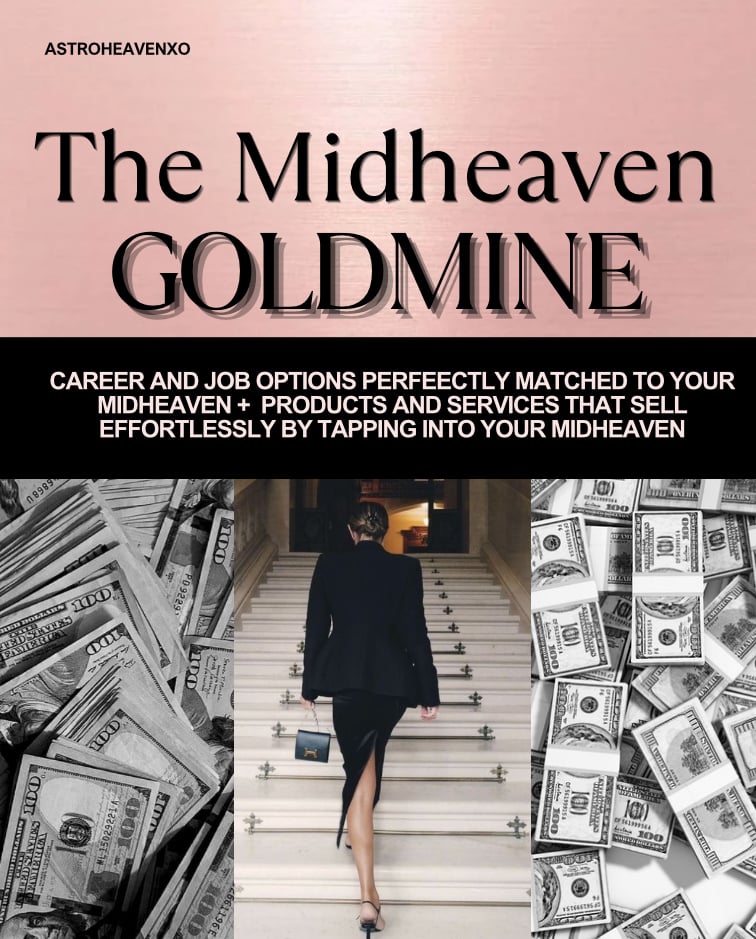 The Midheaven Goldmine is a no-fluff, brutally practical guide packed with career, business, and creative ideas—tailored specifically for each zodiac sign’s Midheaven energy.