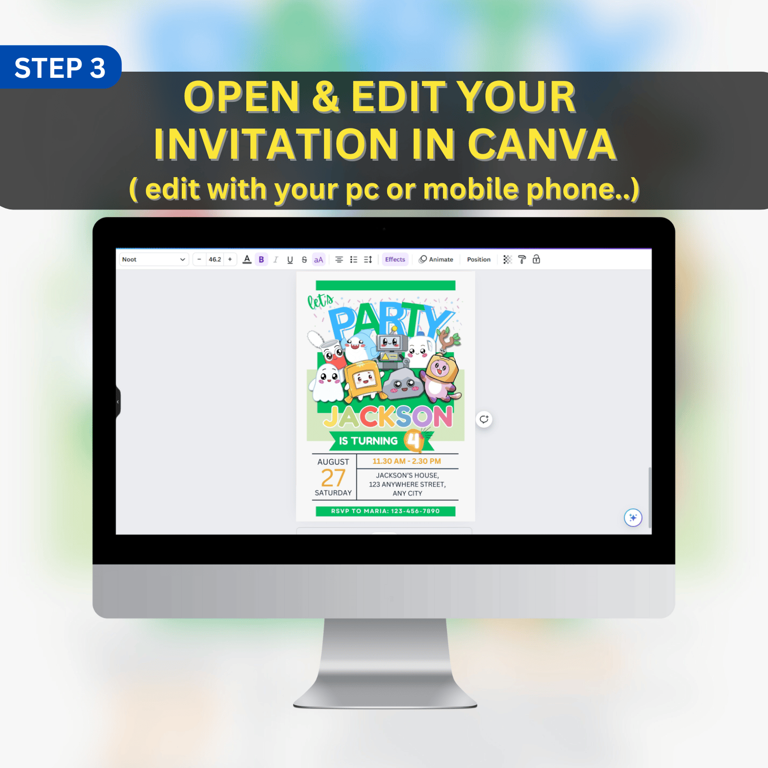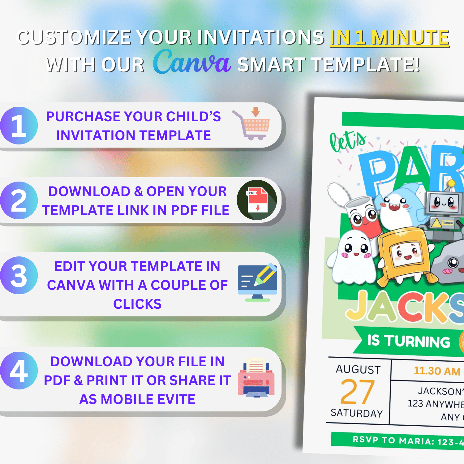 Customize your invitation using Canva.