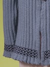 This cardigan is worked from the bottom up in pieces, then sewn together. The color pattern is worked as a mosaic pattern. You only ever work with one color at a time, slipping the stitches that you will work in the other color on the following two rows. This makes it so easy to add color in your knitting. Stitches are picked up for the front band/collar and worked in reverse Stockinette stitch.