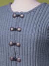 I love the stitch design for this sweater – it’s very simple (just a slip stitch pattern done over 2 rows!), yet when you add the contrasting color, it looks very complex. I used just 4 pairs of buttons, and didn’t continue them down the length of the sweater; the result is that it doesn’t cling to your hips – and it leaves lots of room for movement.