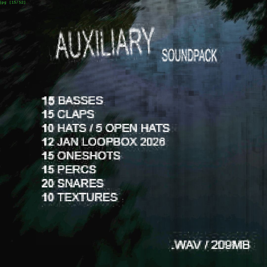 Auxiliary blends organic and environmental recordings with industrial processing and atonal sound design, forming a focused palette of textured material. Curated for ambient, IDM, and experimental music, the sounds are designed to sit in the background, shaping space, tension, and adding atmosphere in your music.