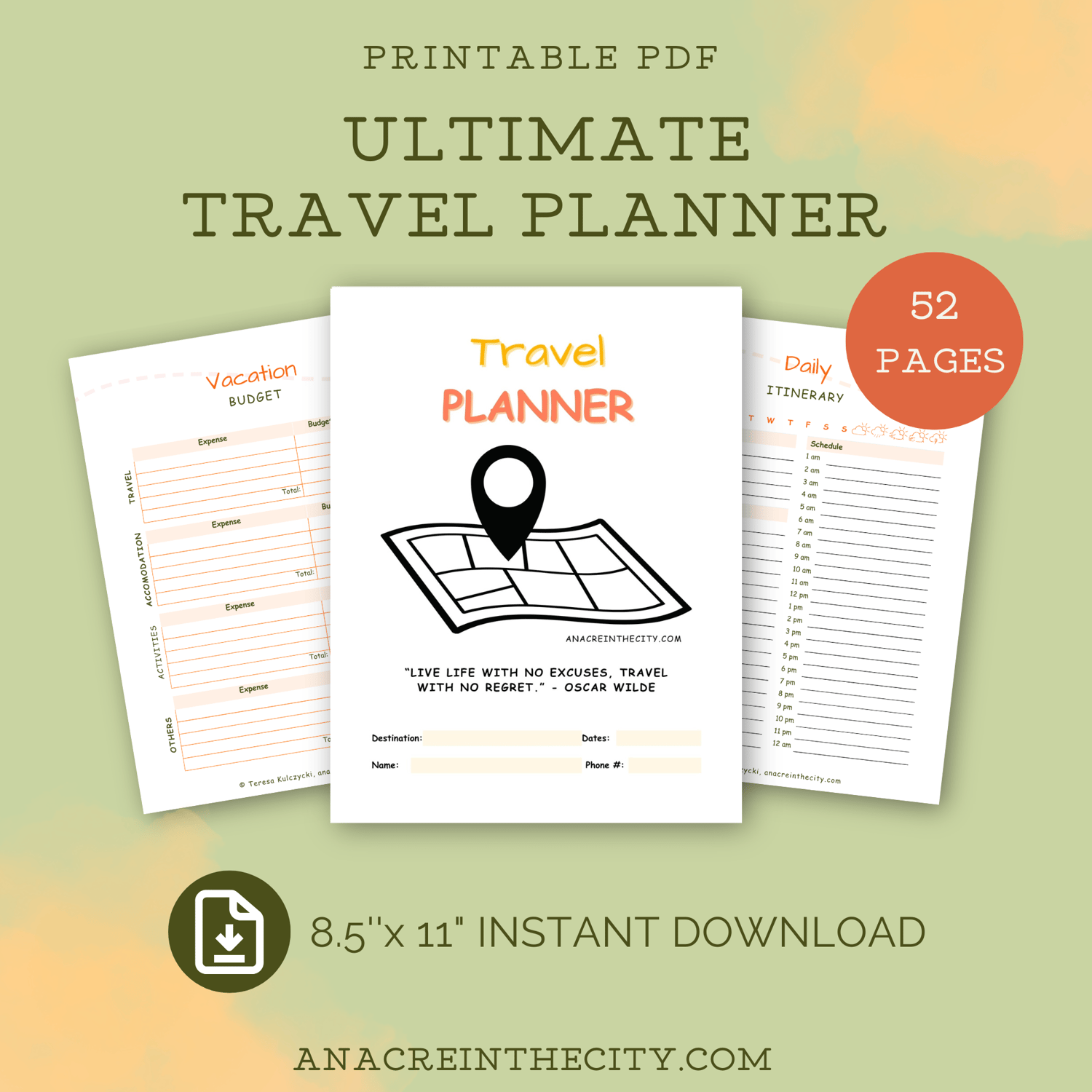 This Travel Planner BUNDLE includes 52 US letter-size pages: