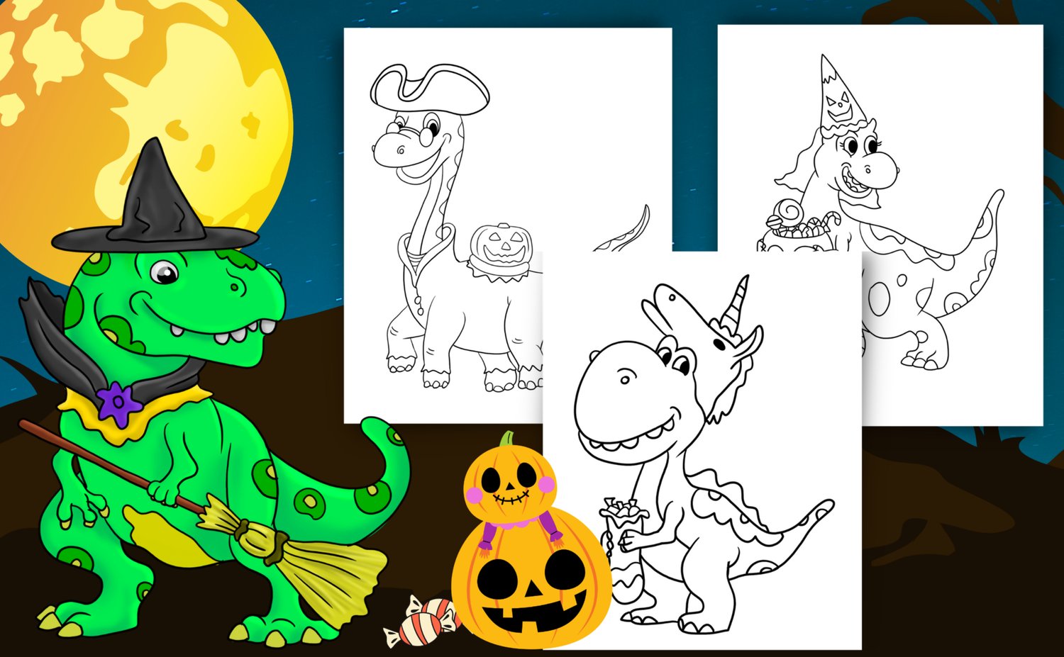 Dino Halloween Coloring Book -20+ Page Printable PDF for Kids