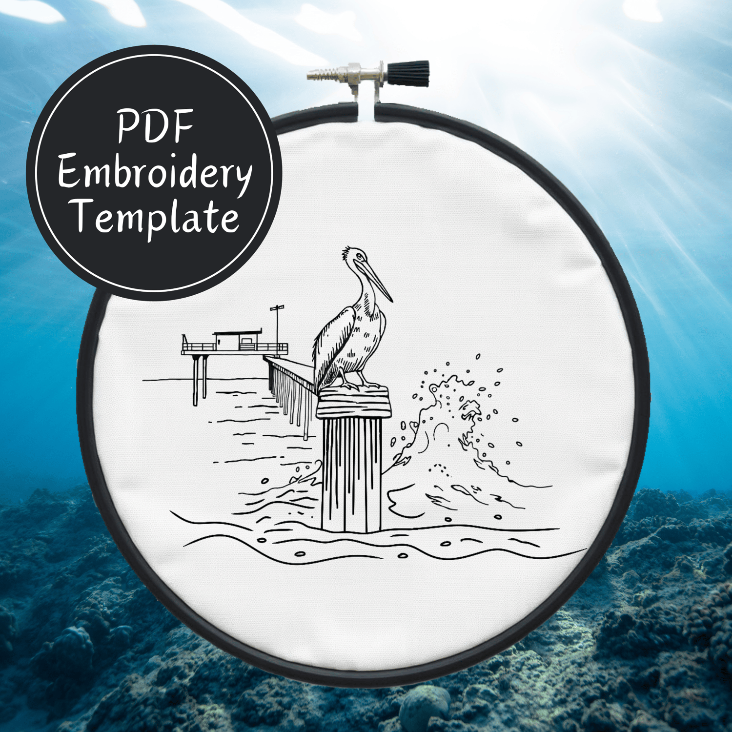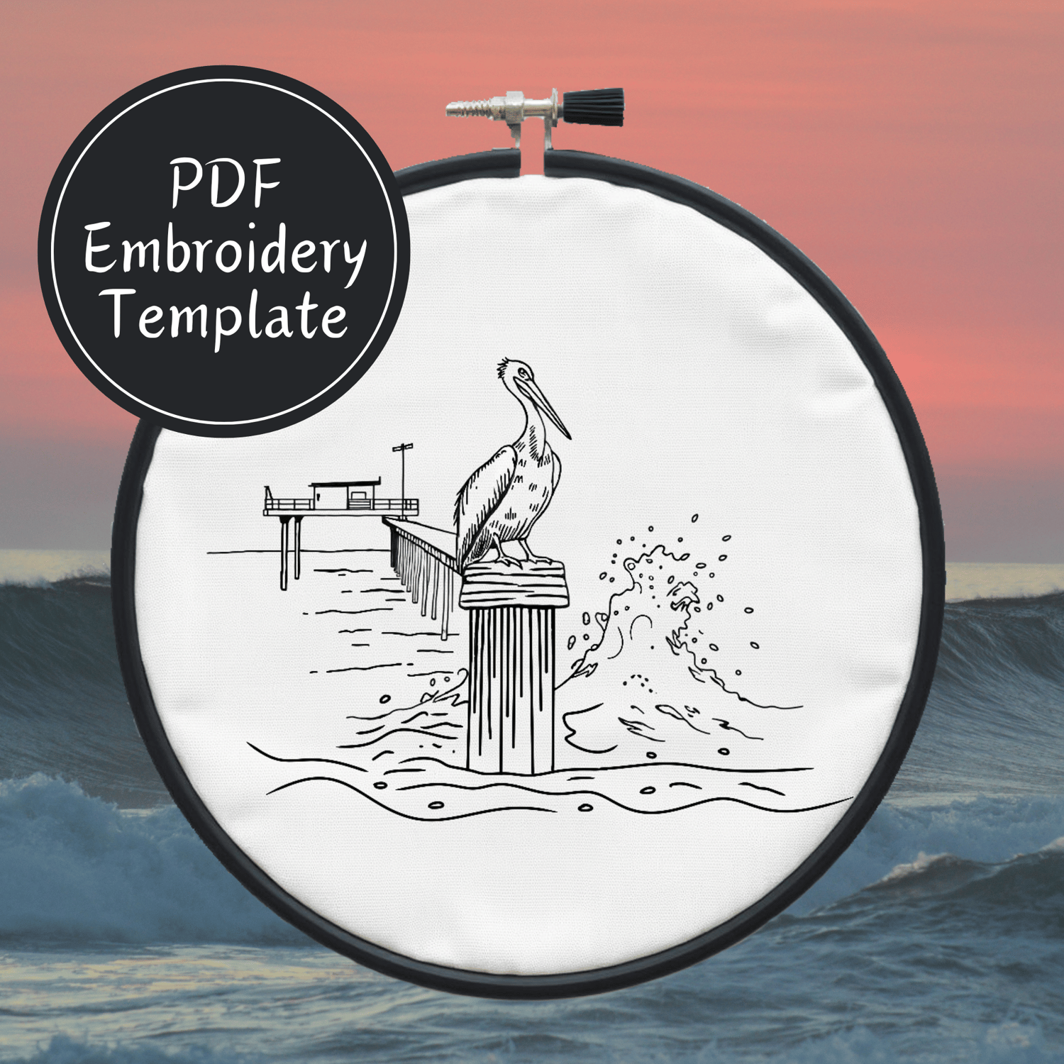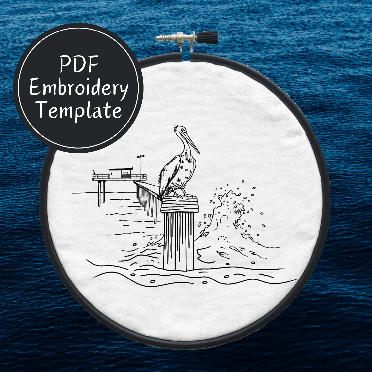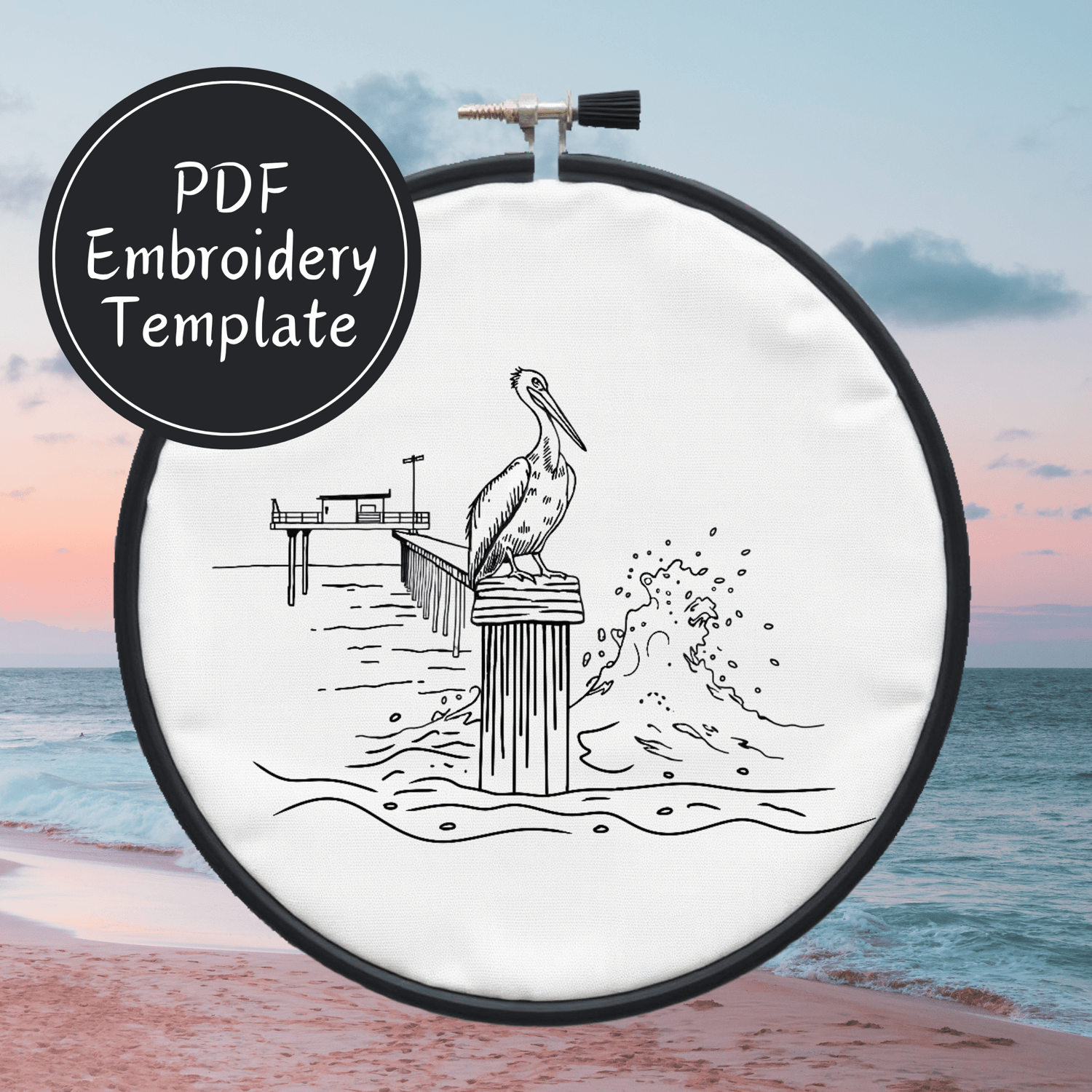 Pelican On A Pier Hand Embroidery Pattern DIY Embroidery