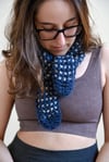 The Snow Flurry Scarf was designed for 2 strands of DK weight bouclé yarn held together. The pattern can also be worked with any number of yarn weights/styles so long as you can achieve the pattern gauge. For instance, feel free to use aran or bulky weight yarns held on their own or combine different yarn weights to achieve the pattern gauge.