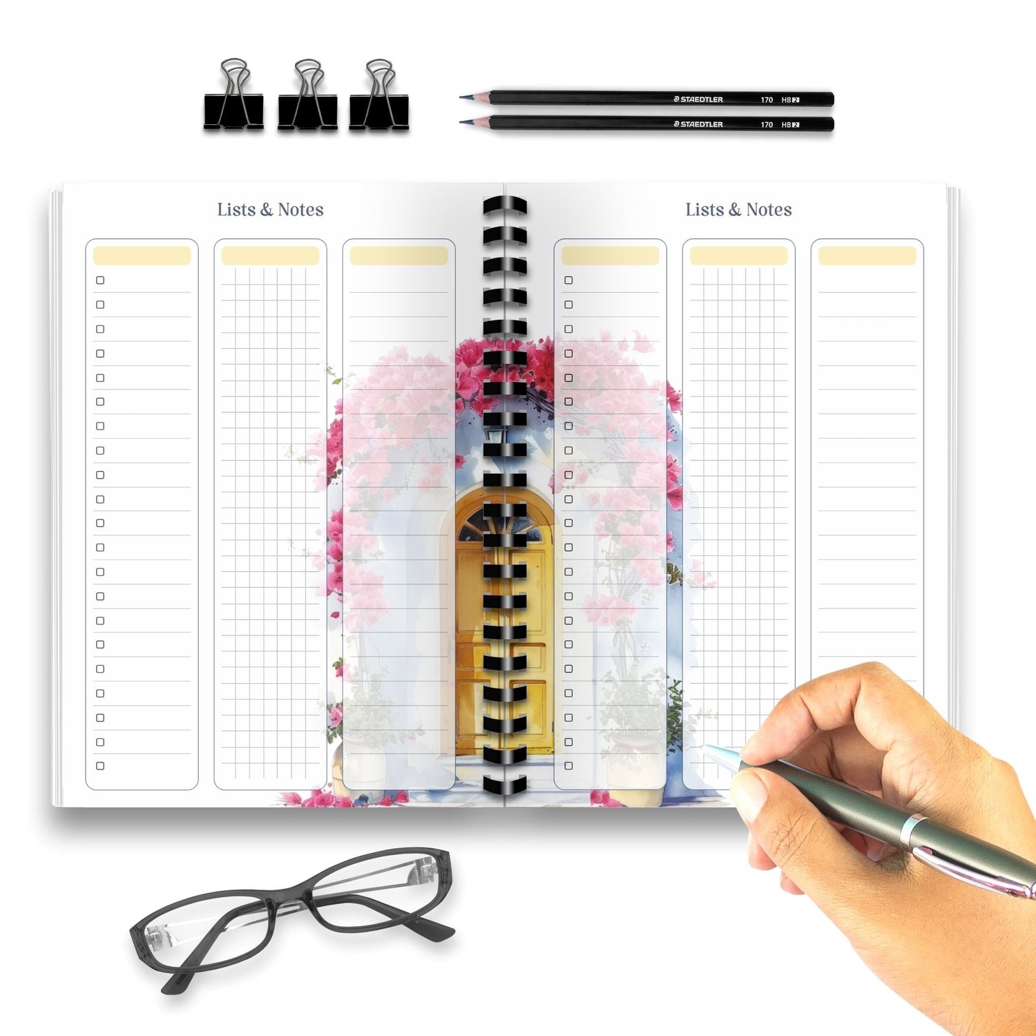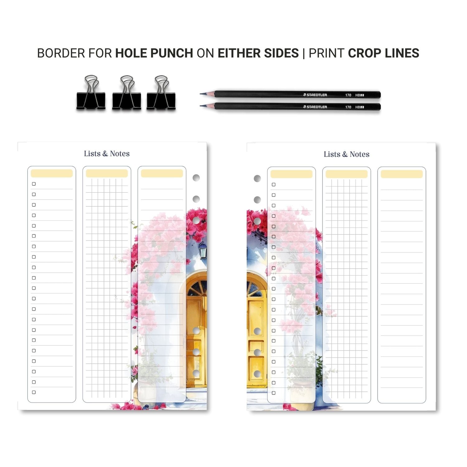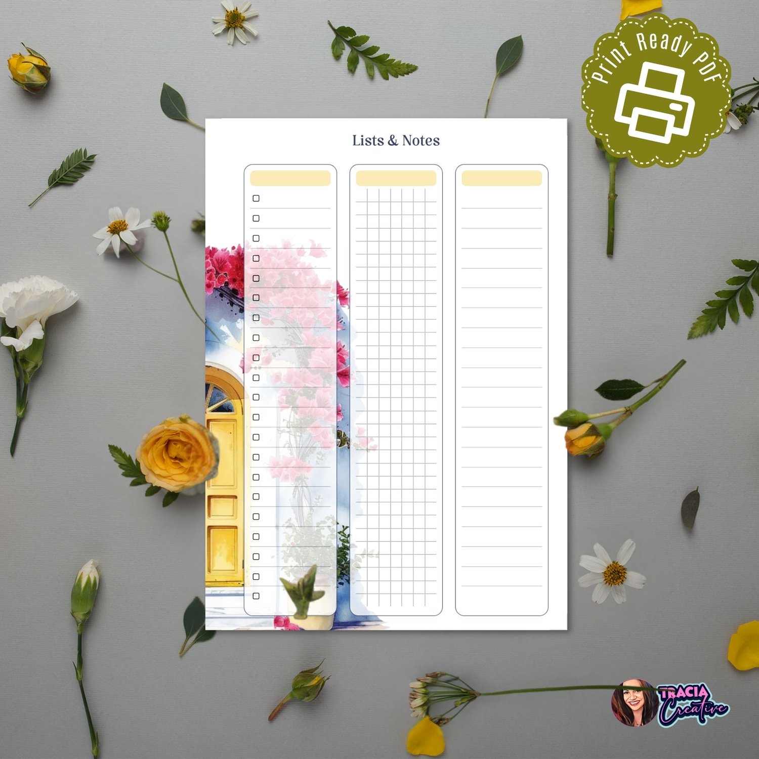 Transform your planning routine with our enchanting Mediterranean Lists and Notes planner insert! This A5-sized beauty brings a touch of coastal charm to your organizational game.
