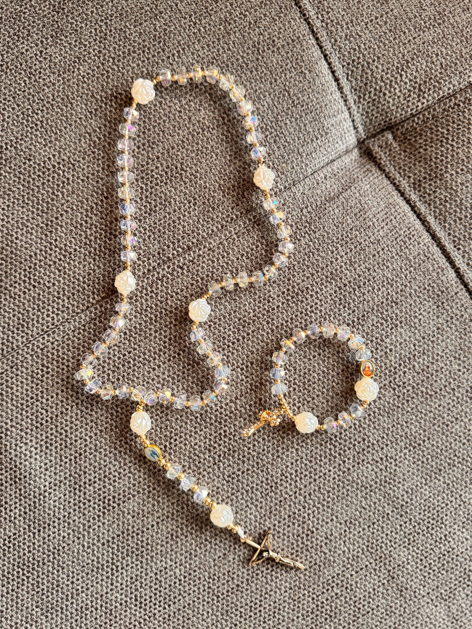 Premium Set Crystal & Gold Rosary & One Decade Bracelet
