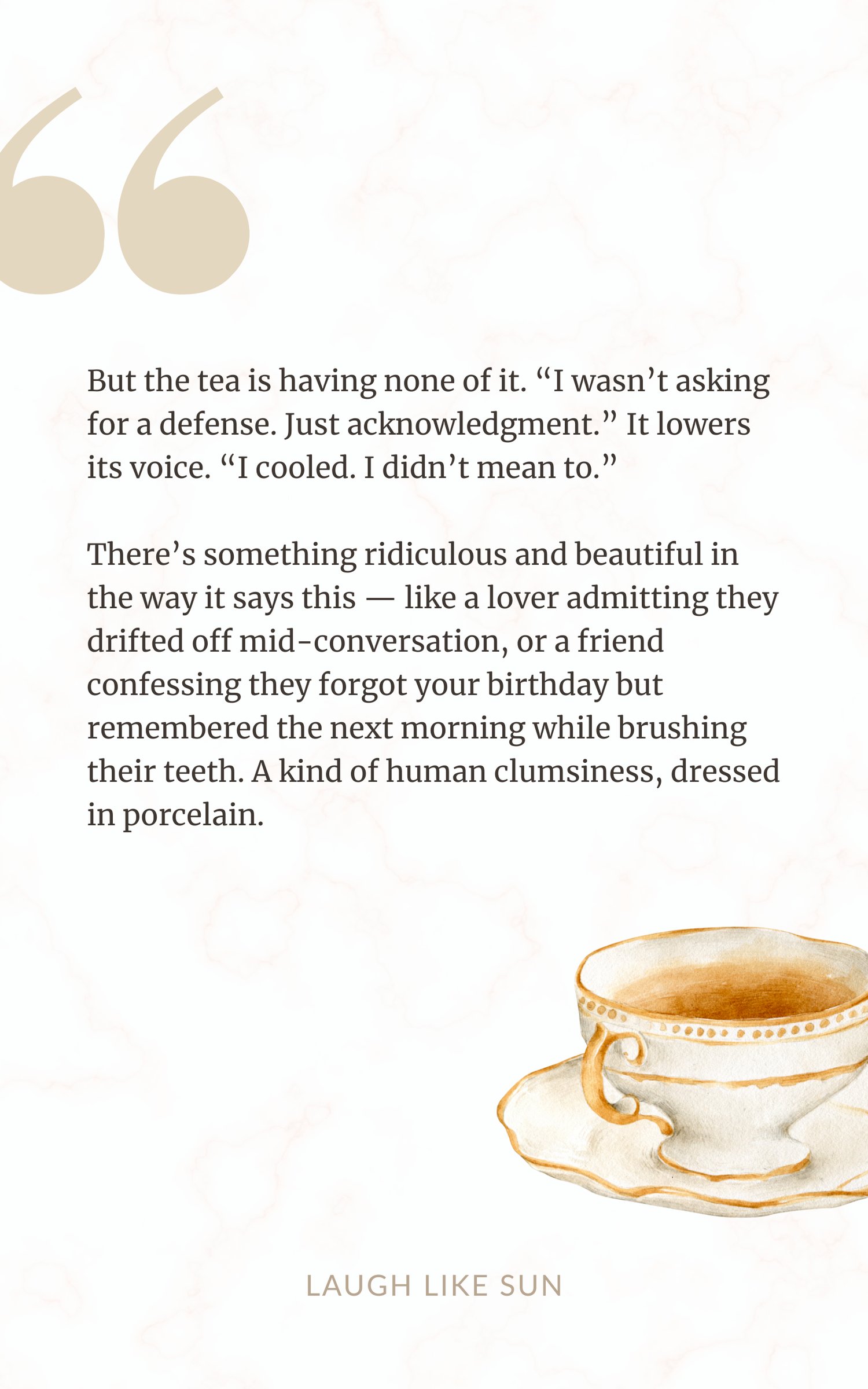 A Cup of Tea That Apologizes for Going Cold is a miniature tale wrapped in humor, heart, and the quiet absurdity of daily life. It’s a soft, warm window into a moment where a simple cup of tea becomes a companion with its own gentle regrets.
