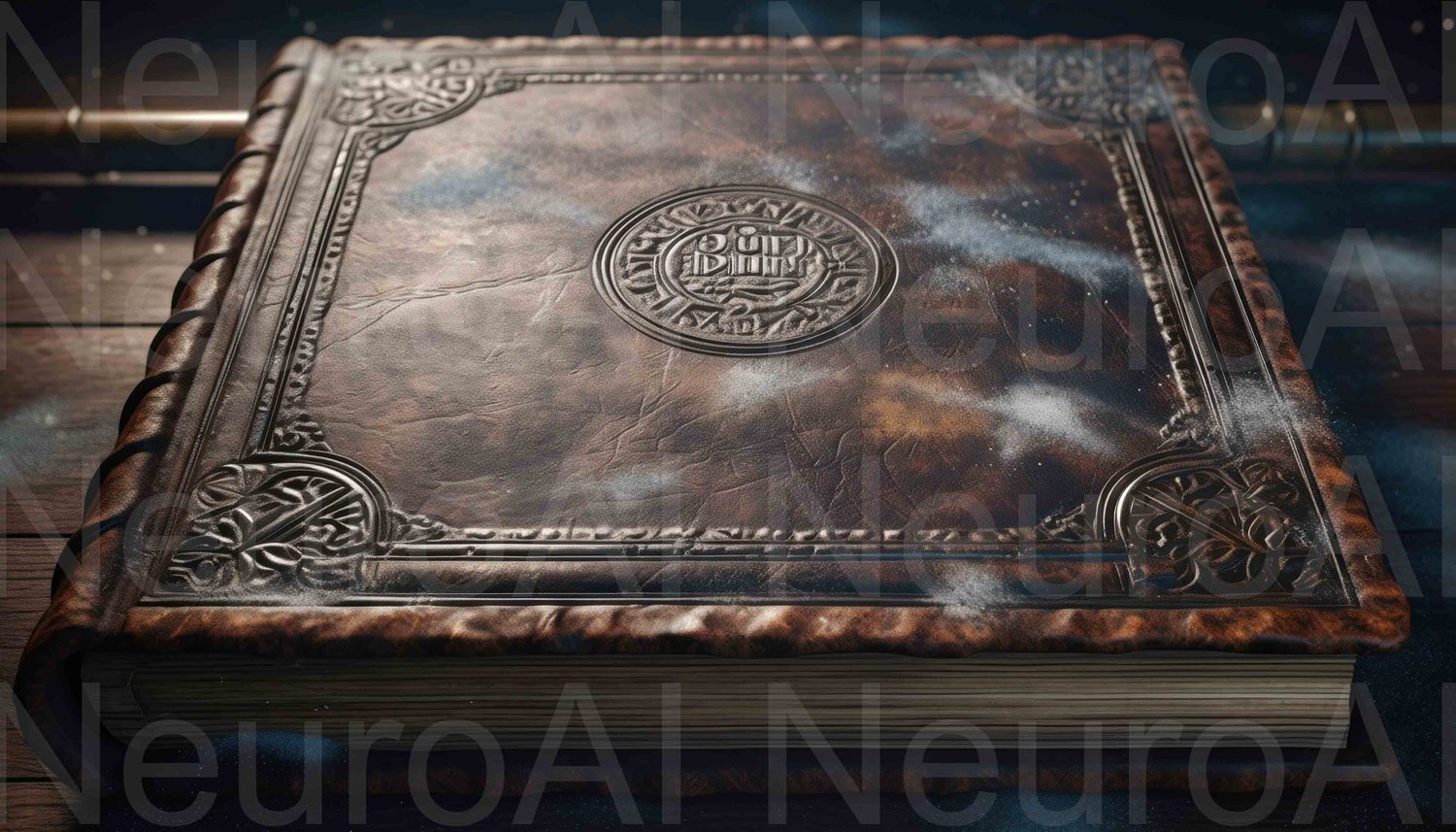 Antique leather book with intricate cover design and detail
