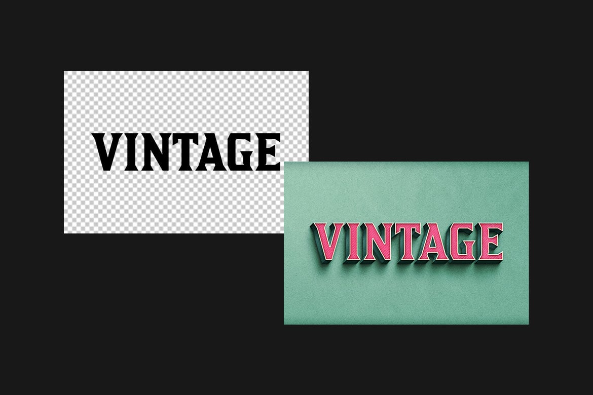Features a vintage 3D text effect that combines retro typography with a tactile, printed look reminiscent of old posters or signage. Conveys a classic retro charm, blending 3D design, muted colors, and print-inspired textures to achieve a stylish vintage aesthetic.