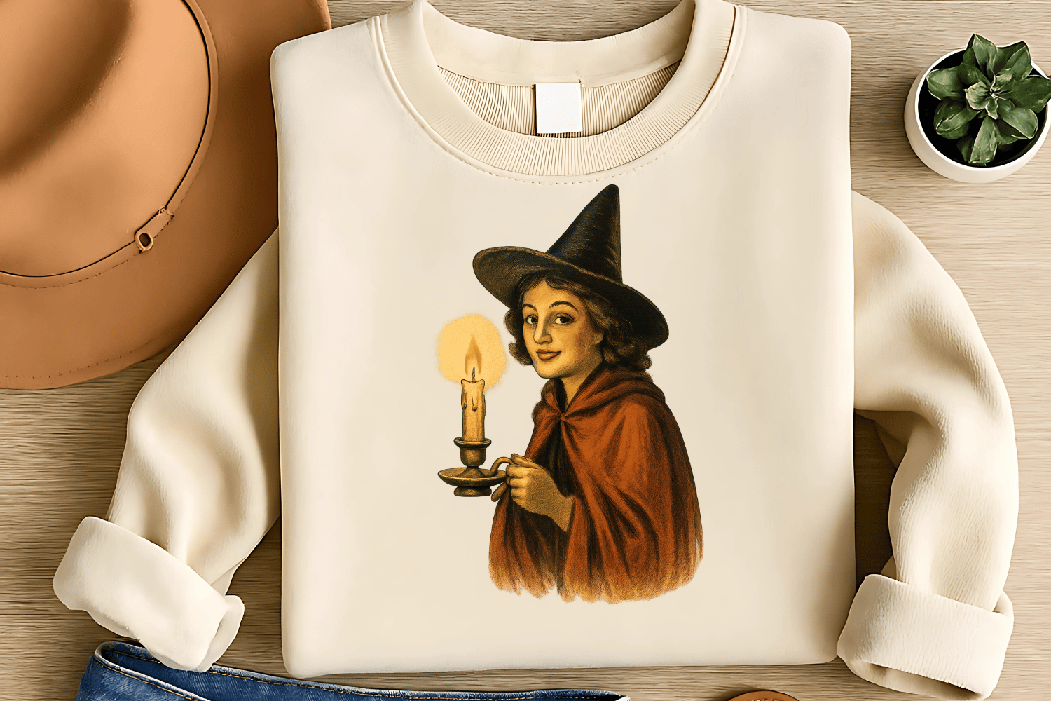 Vintage Halloween Witch Sublimation PNG – Old-Time Spooky Clipart for T-Shirts – Classic Magic & Candlelight Theme – 300 DPI Instant Digital Download