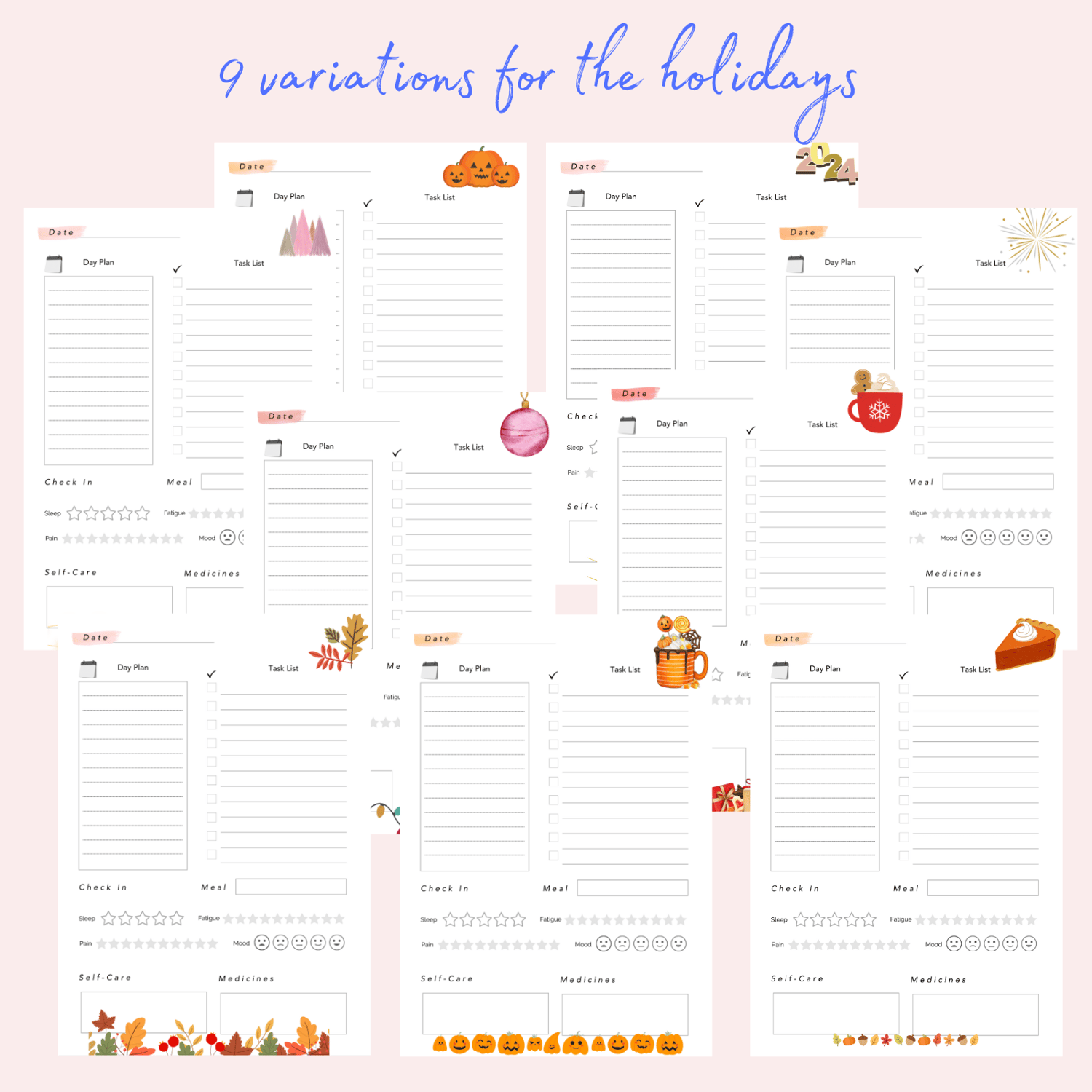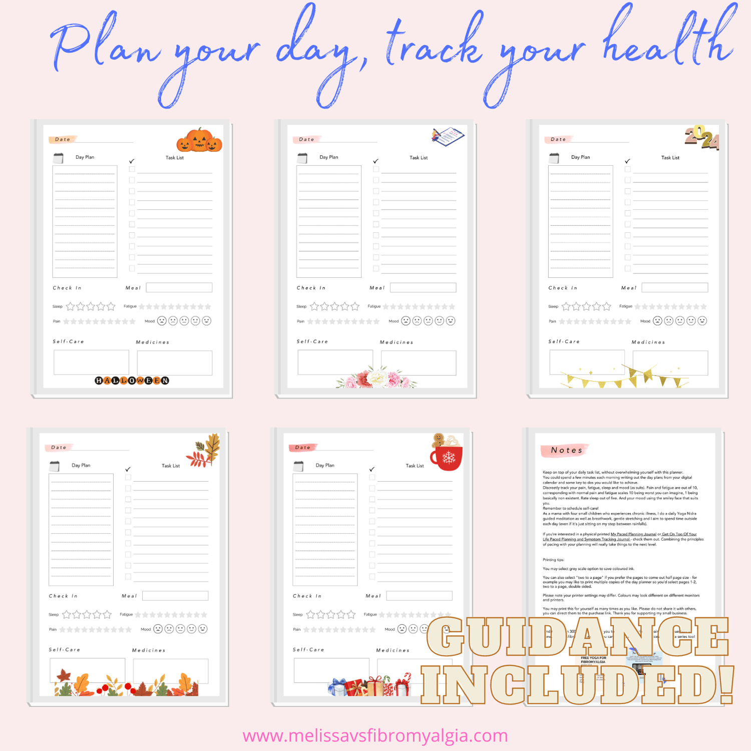 Pretty Seasonal Day Planner & Health Check In Sheets