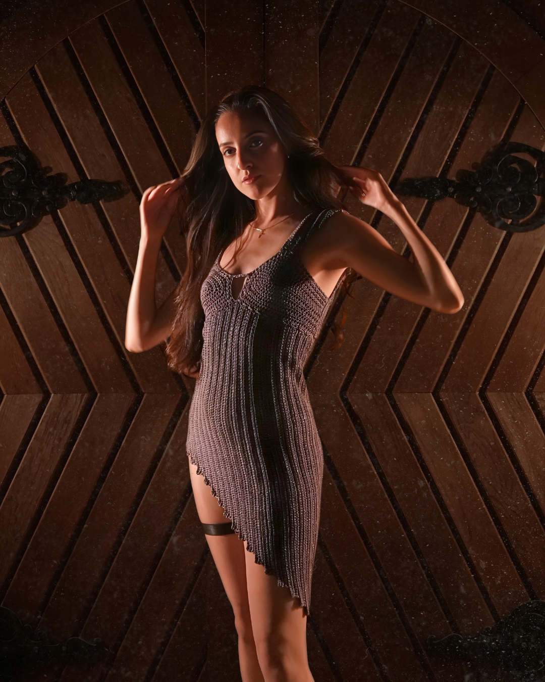 The Silver Savior Dress is a hand-crocheted, heirloom-quality garment made over 100+ hours using breathable bamboo rayon. Inspired by Paedyn Gray from the book Powerless and designed for a custom fit, this dress is made to order and created specifically for you.