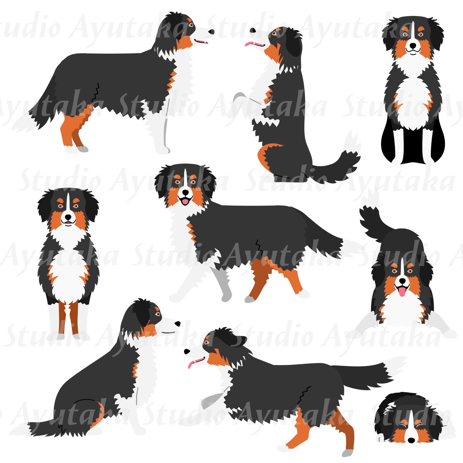 Bring your love for Australian Shepherds to life with our **9 Black Tricolor Australian Shepherd Bundle**! This unique collection features adorable, hand-drawn illustrations of these charming dogs in various poses—running, sleeping, and playing—perfect for any dog lover, Aussie enthusiast, or craft designer.