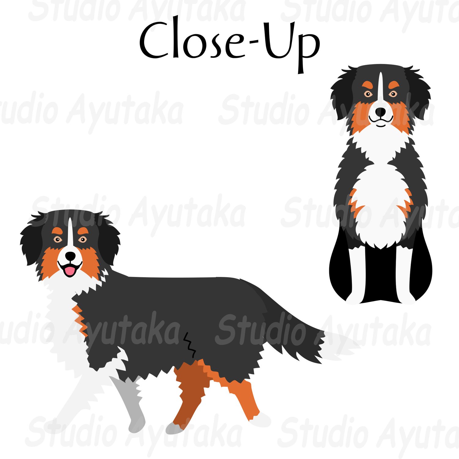 Black Tricolor Australian Shepherd Bundle - Hand-Drawn Digital Illustrations