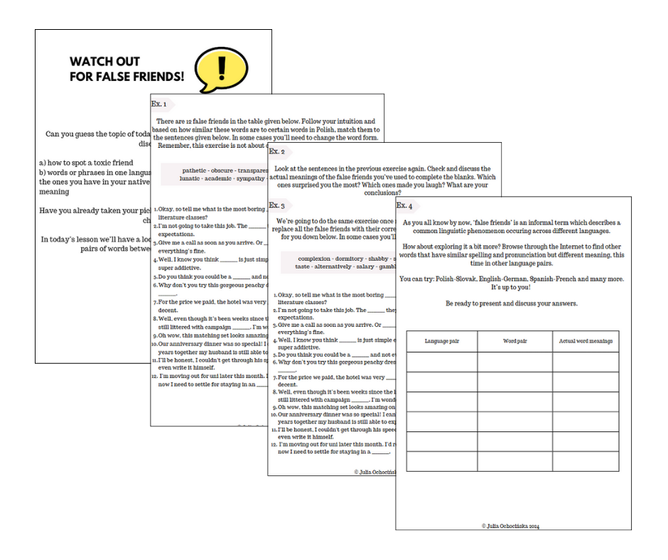 - to familiarize your students with the phenomenon of 'false friends' and help them identify those common linguistic traps across different languages