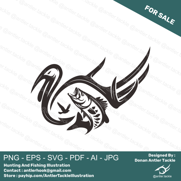 Turkey Deer Antler Bass Fish Hunting Fishing Logo Exclusive License Designed By Donan Antler Tackle