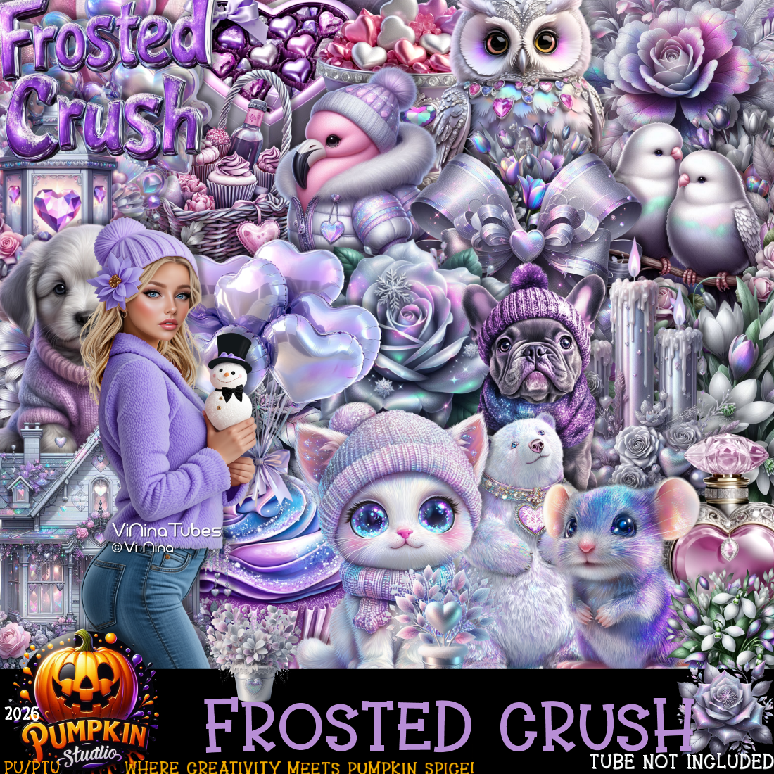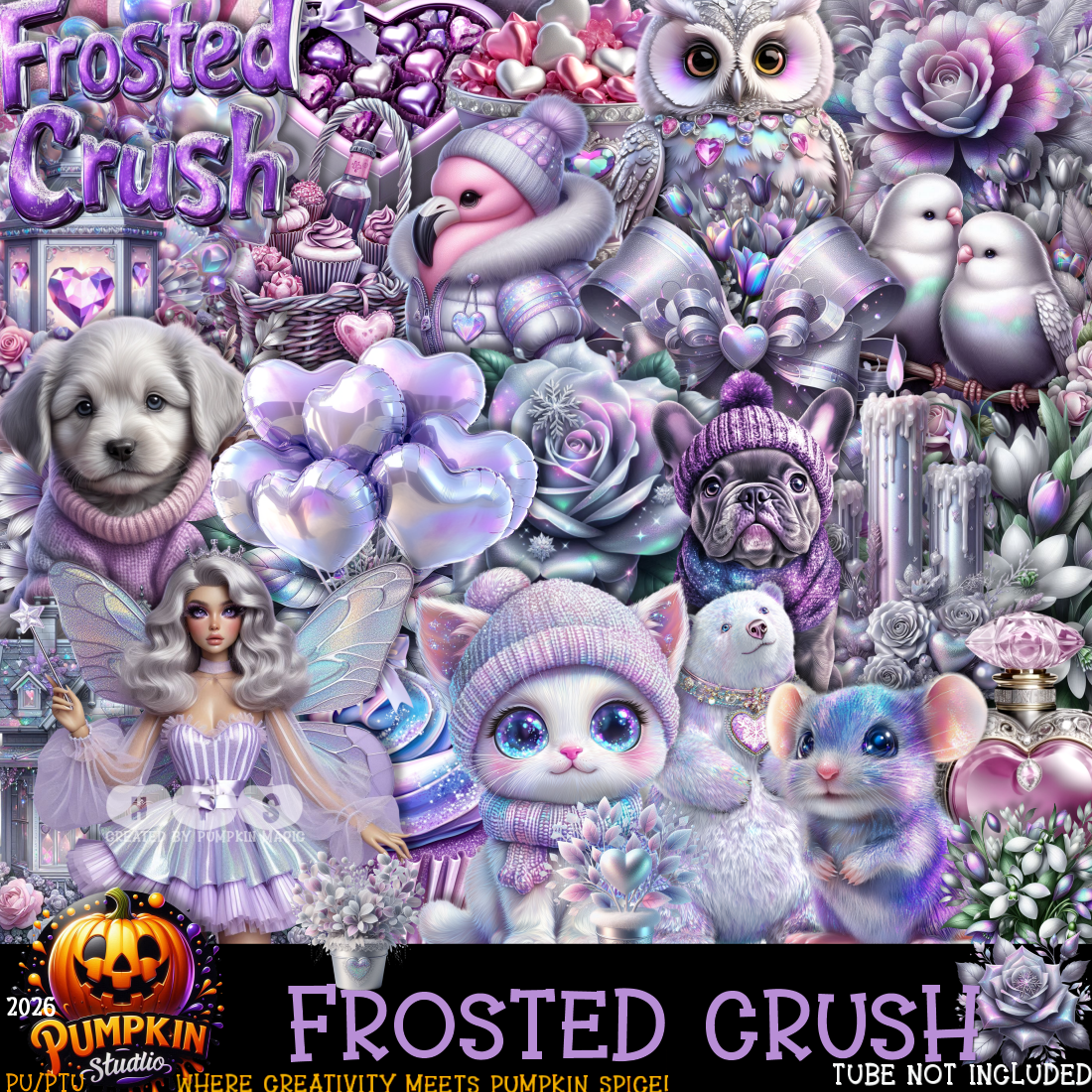 Fall head over heels for Frosted Crush — a whimsical winter Valentine PSP kit wrapped in icy lavender, silver, and holographic sparkle. Soft, frosty, and full of playful charm, this kit is perfect for dreamy Valentine creations with a cool-girl twist.